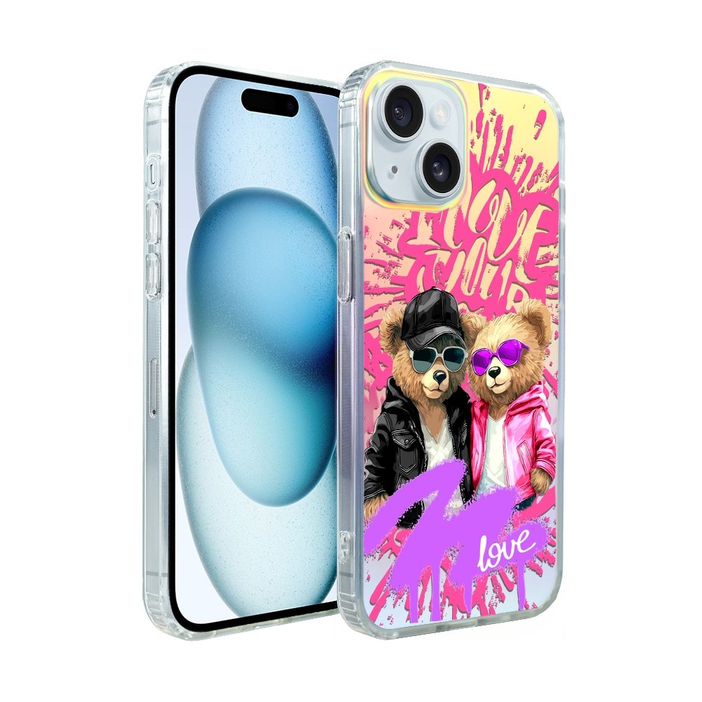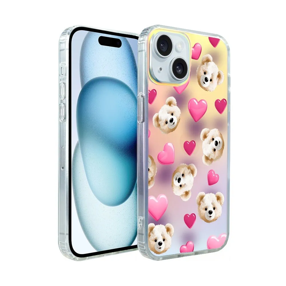 Etui do iPhone 15 Bear With Me, Love Mood, miś i serduszka, zmieniające kolor