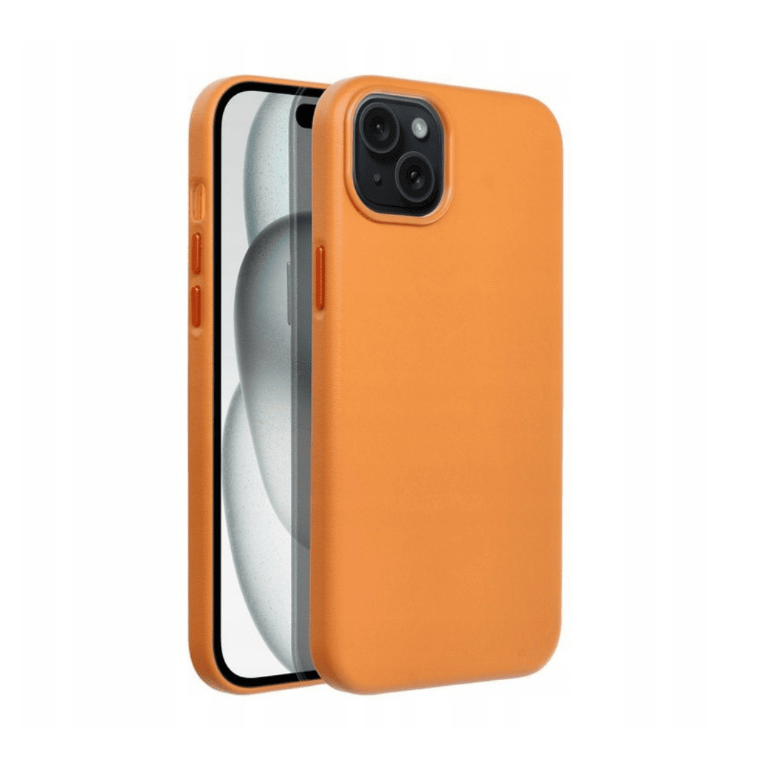 Etui do iPhone 15 biznesowe skórzane z MagSafe, trwałe, pomarańczowe