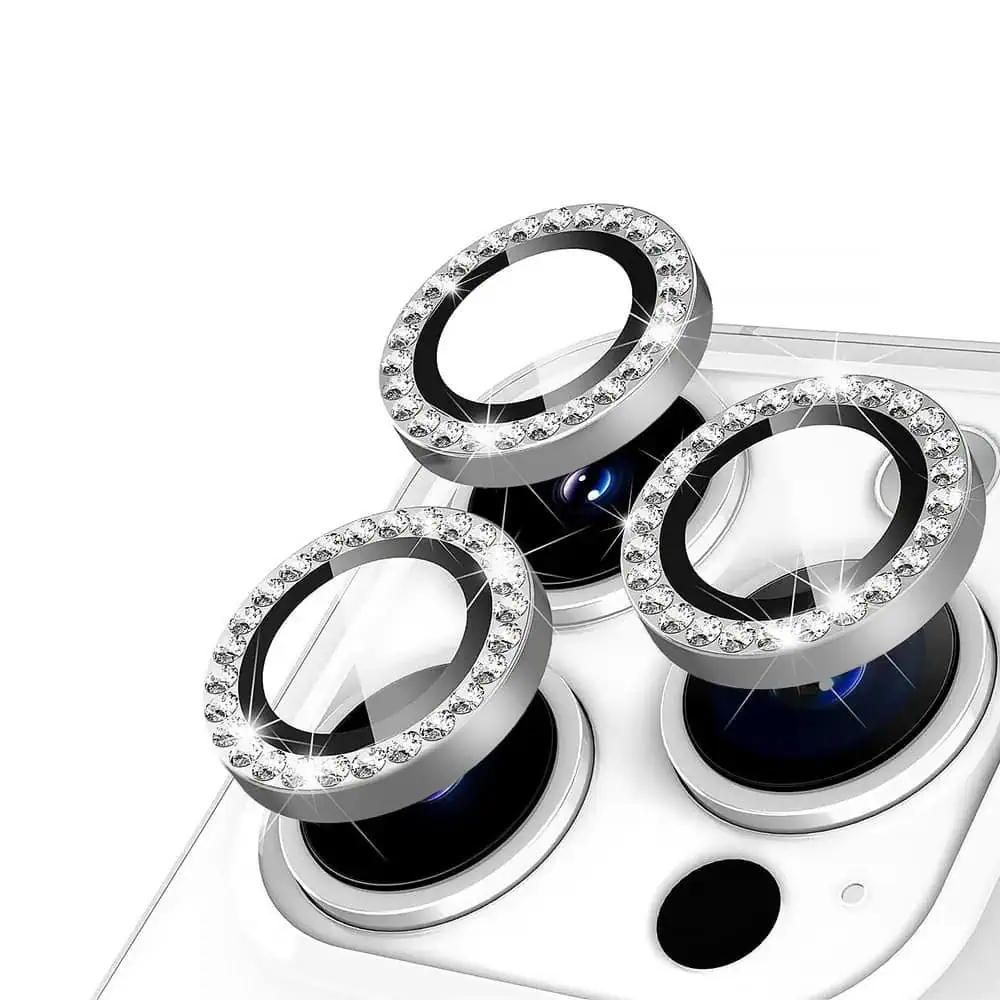 Luksusowa diamentowa osłona obiektywów, szkło na aparat iPhone 16 Pro, srebrna