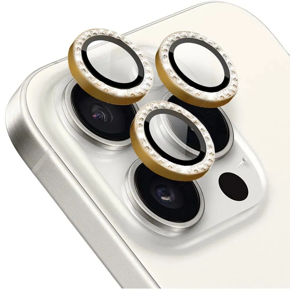 Luksusowa diamentowa osłona obiektywów, szkło na aparat iPhone 16 Pro, złota