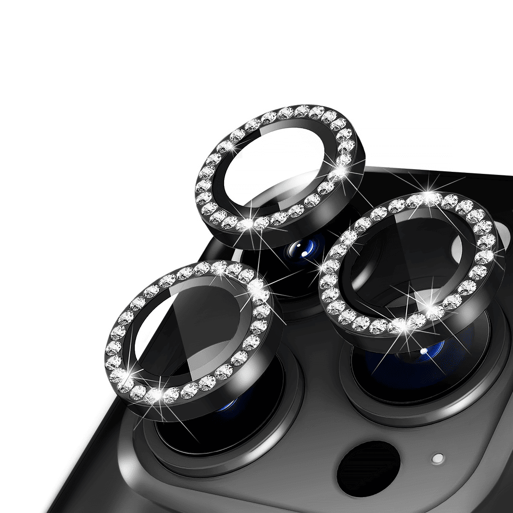 Luksusowa diamentowa osłona obiektywów, szkło na aparat iPhone 16 Pro, czarna