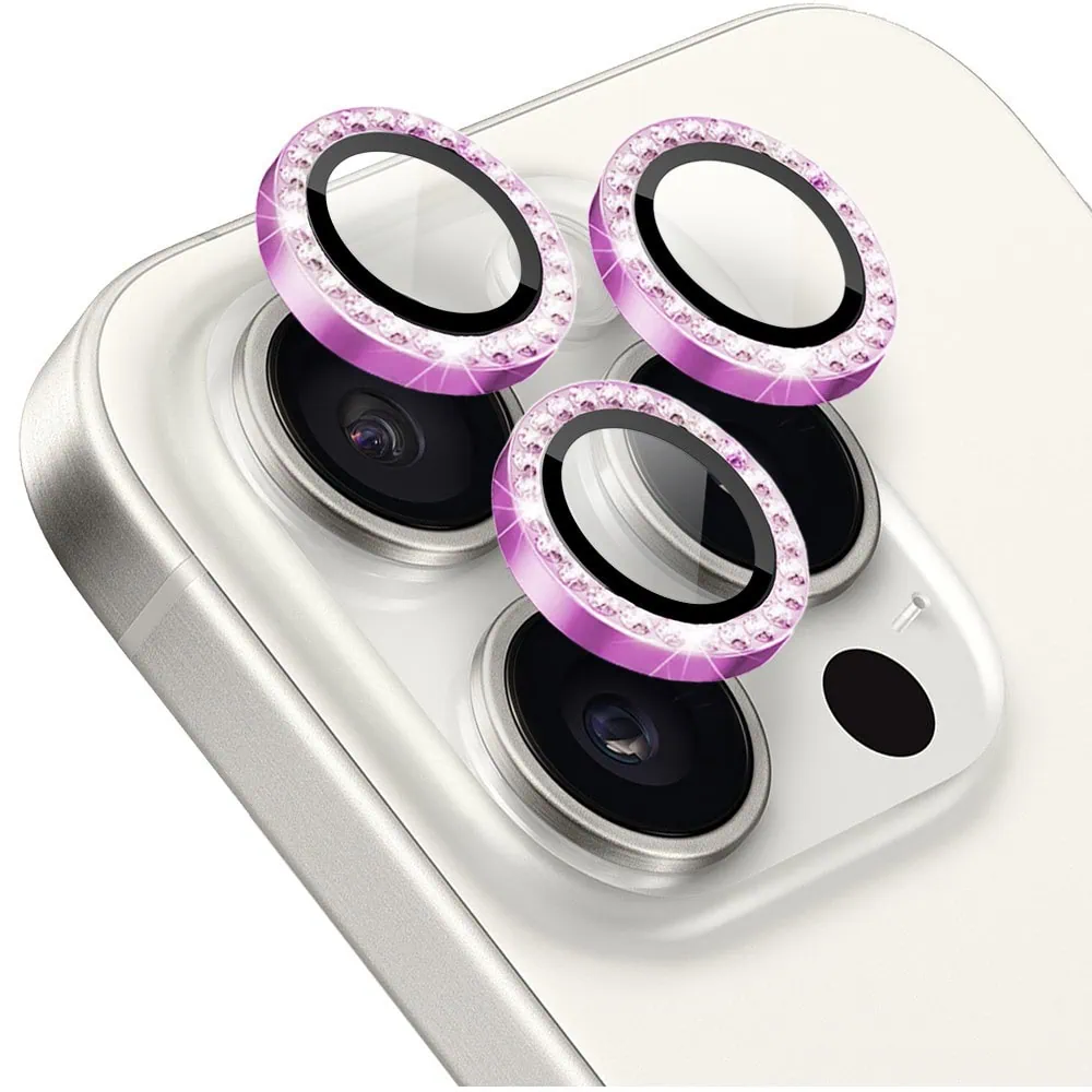 Luksusowa diamentowa osłona obiektywów, szkło na aparat iPhone 16 Pro, różowa