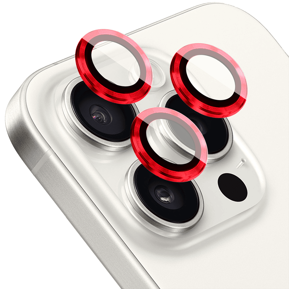 Metalowa osłona obiektywów szkło na aparat iPhone 16 Pro, czerwone
