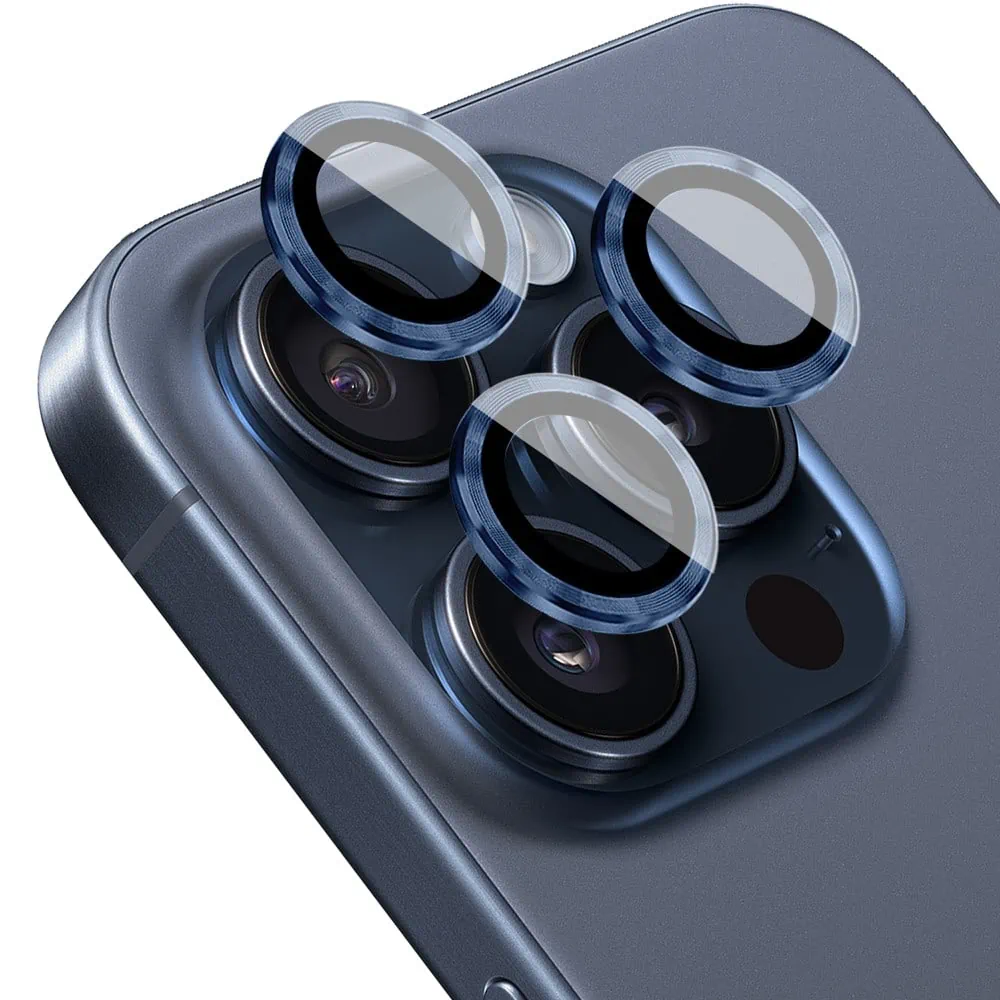 Metalowa osłona obiektywów szkło na aparat iPhone 16 Pro, tytanowe błękitne