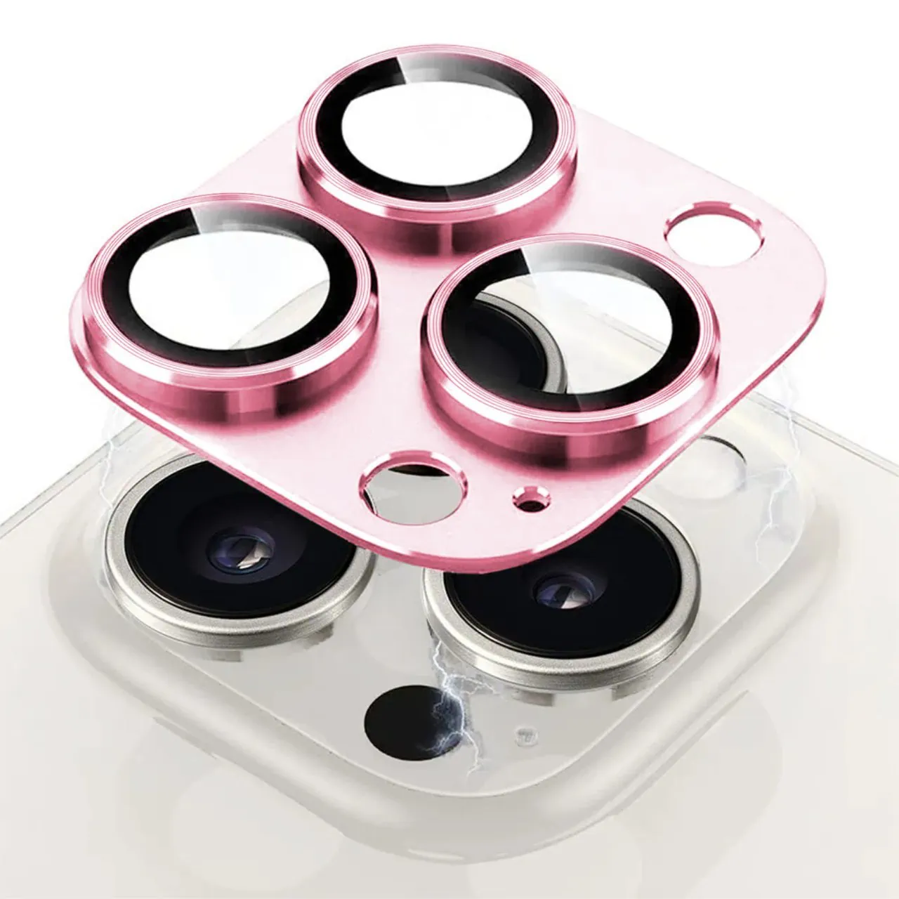 iPhone 16 Pro gładka metalowa osłona na cały aparat, wbudowane szkła 9H, różowa