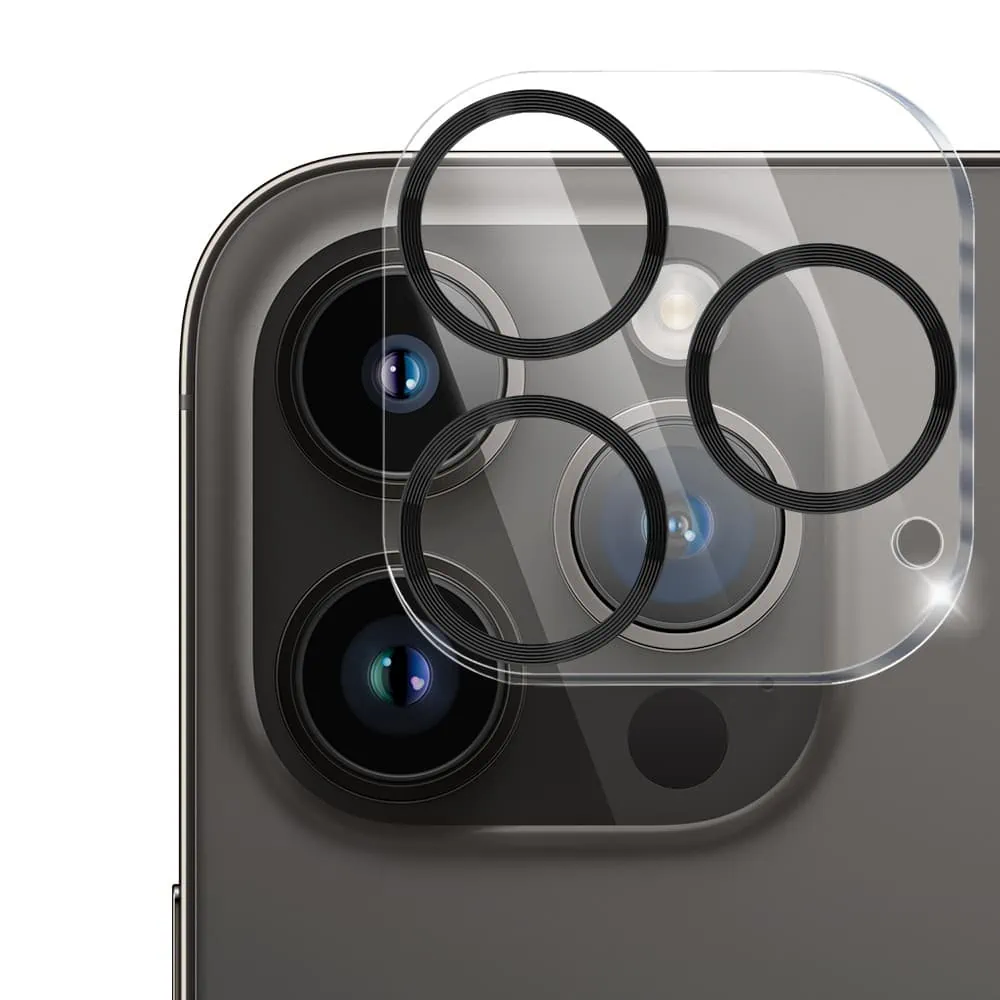 iPhone 16 Pro pełne szkło hartowane na cały aparat z metalowymi pierścieniami, czarne