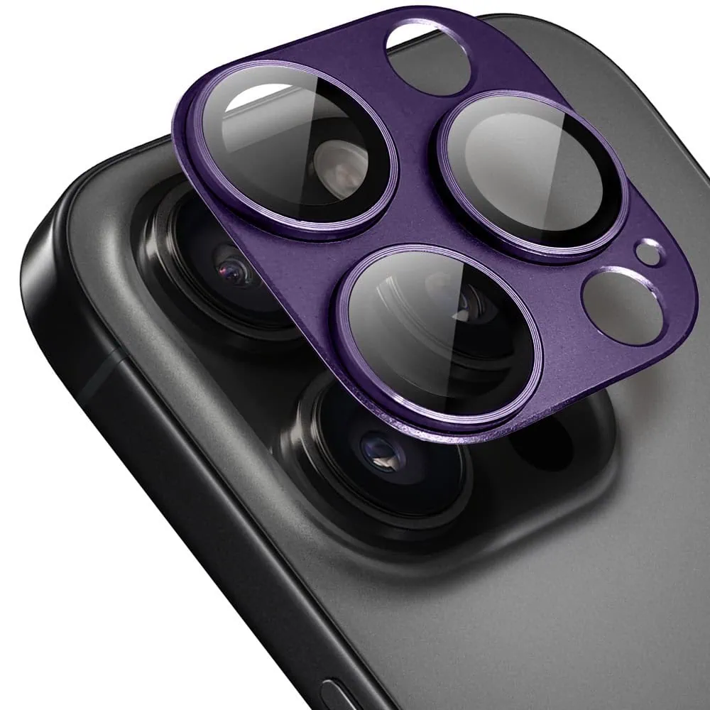 iPhone 16 Pro gładka metalowa osłona na cały aparat, wbudowane szkła 9H, purpurowa