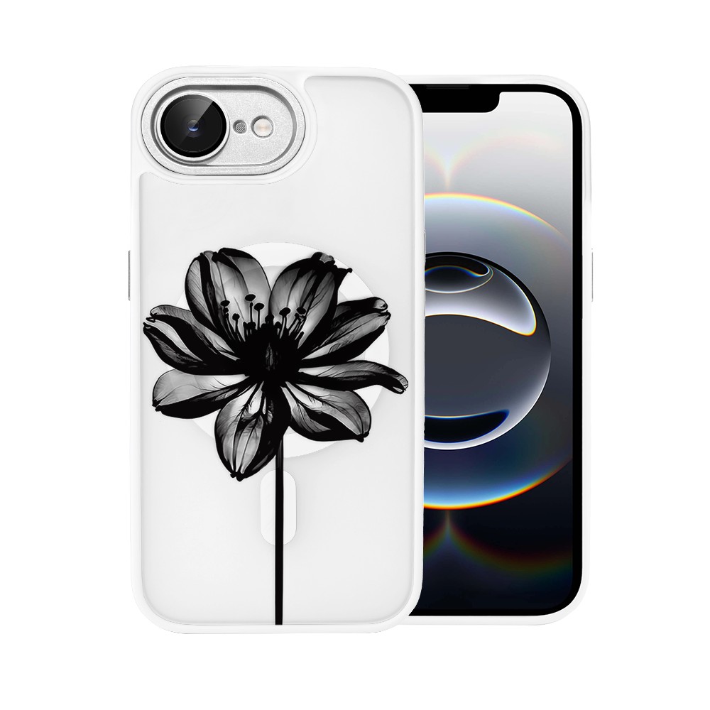 Etui do iPhone 16e Color Flush z MagSafe, z osłoną aparatu, czarny kwiat, białe