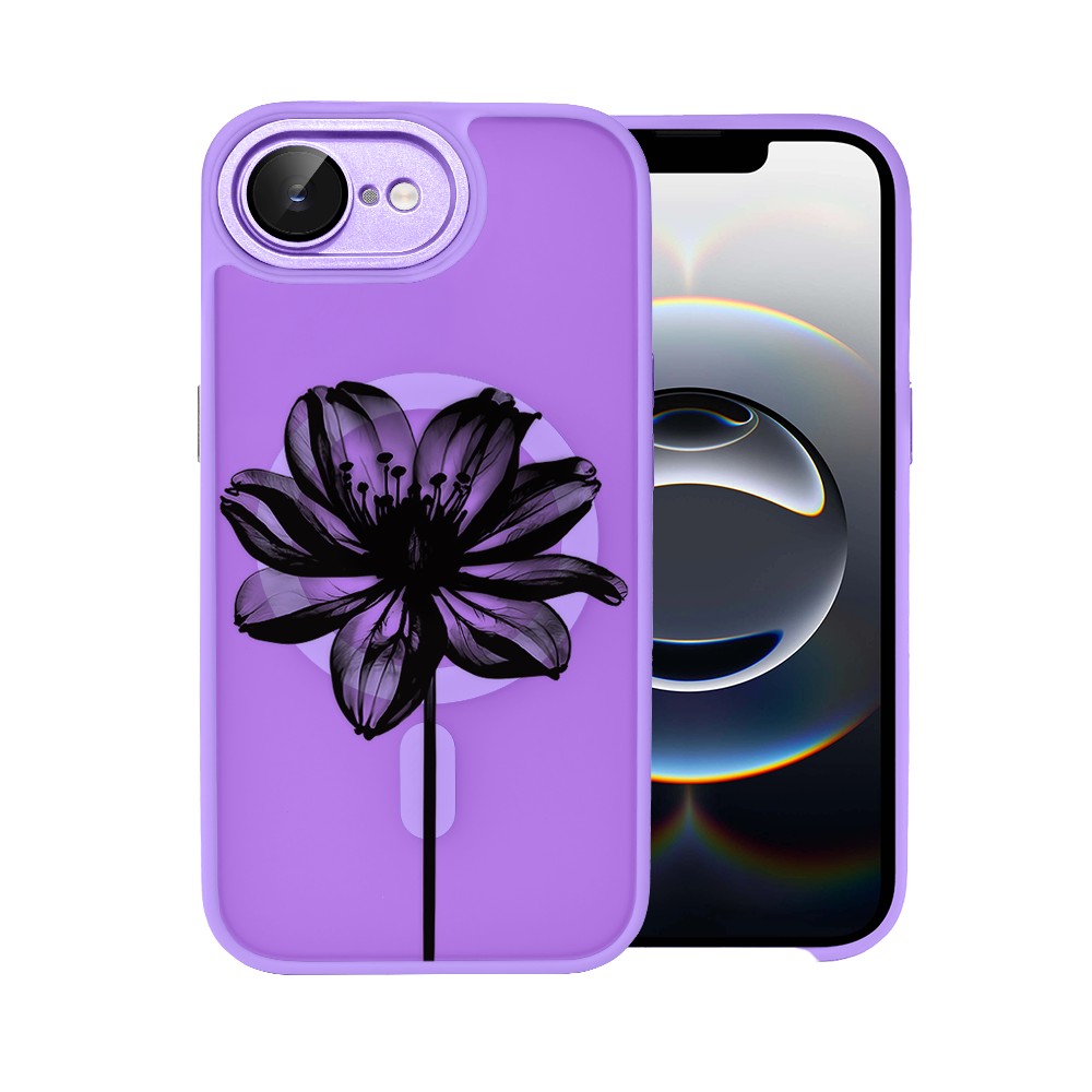 Etui do iPhone 16e Color Flush z MagSafe, z osłoną aparatu, czarny kwiat, fioletowe