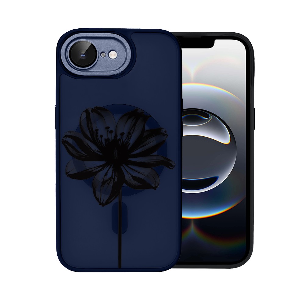 Etui do iPhone 16e Color Flush z MagSafe, z osłoną aparatu, czarny kwiat, granatowe