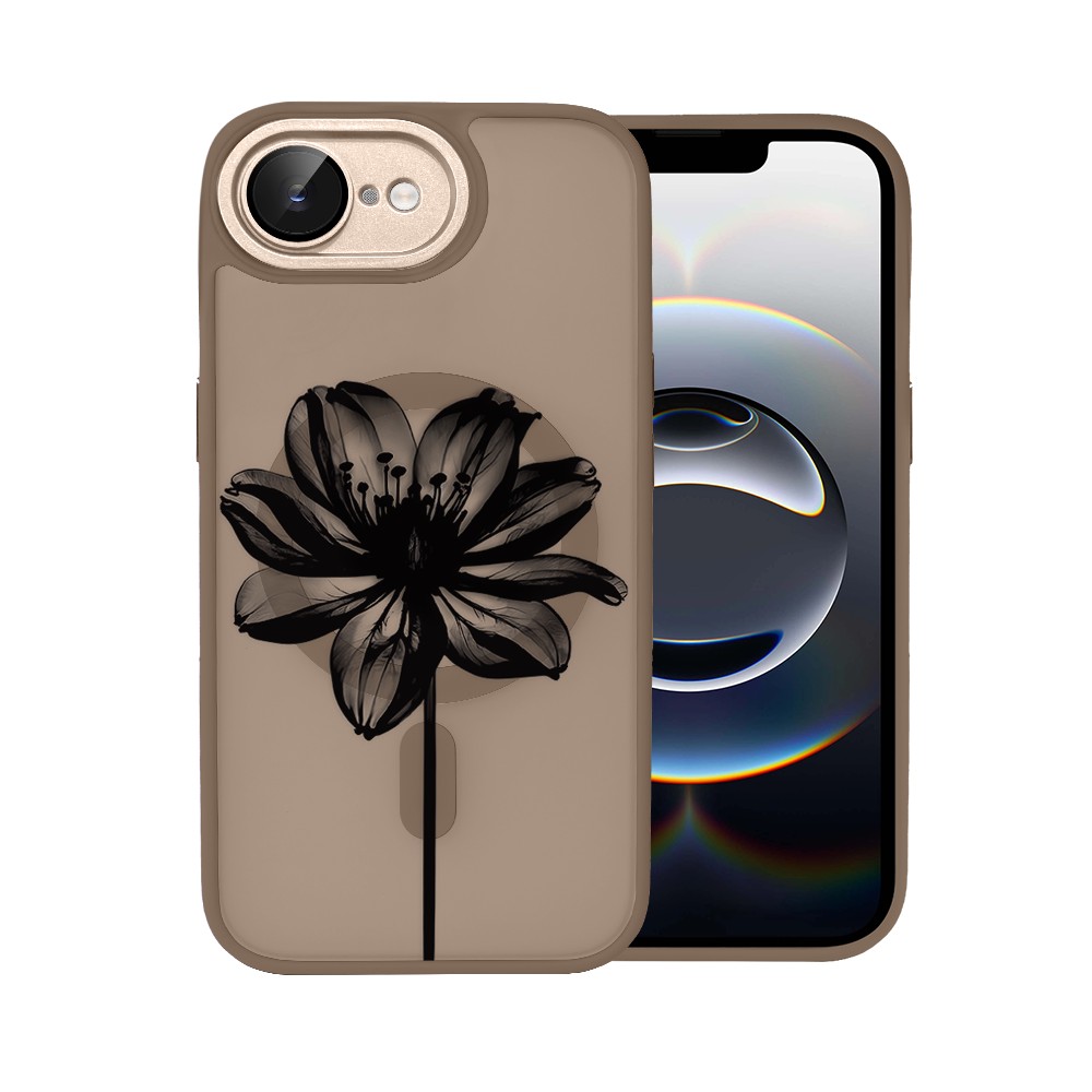 Etui do iPhone 16e Color Flush z MagSafe, z osłoną aparatu, czarny kwiat, pustynny brąz