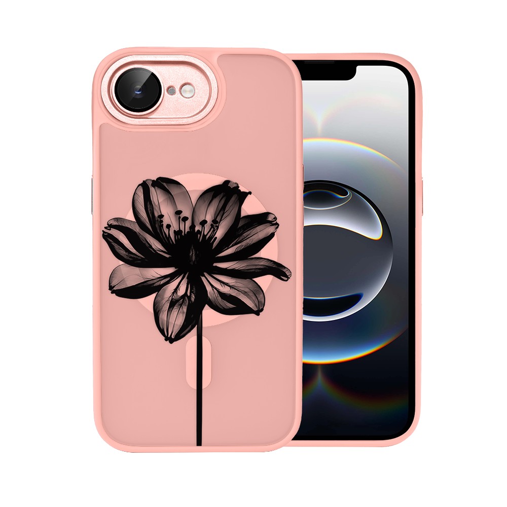 Etui do iPhone 16e Color Flush z MagSafe, z osłoną aparatu, czarny kwiat, różowe