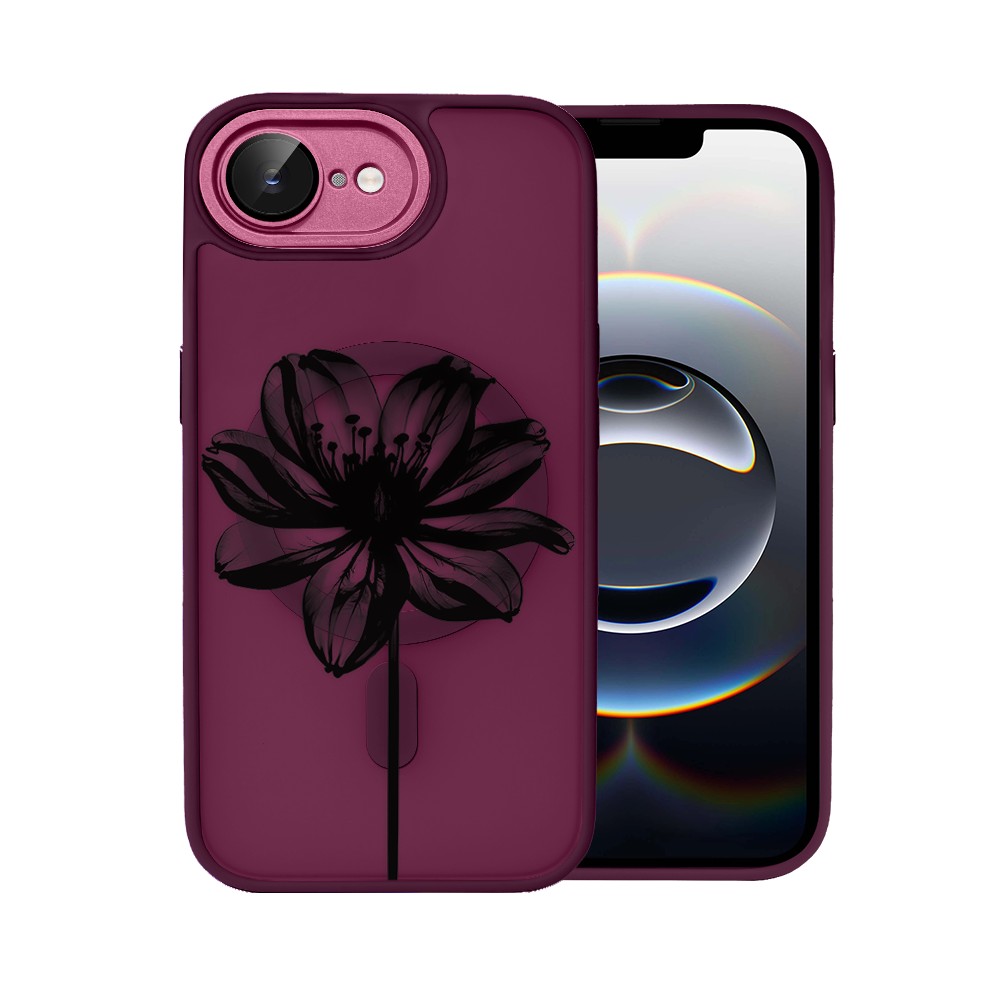 Etui do iPhone 16e Color Flush z MagSafe, z osłoną aparatu, czarny kwiat, wiśniowe