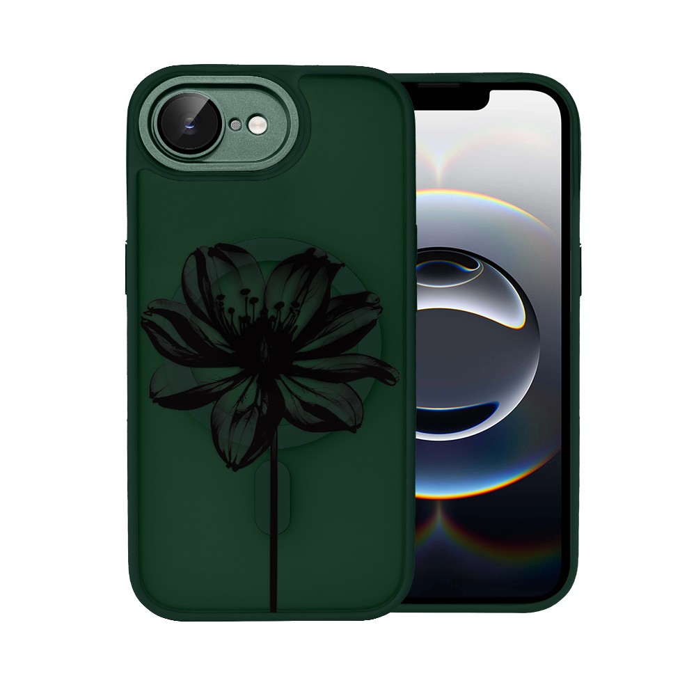 Etui do iPhone 16e Color Flush z MagSafe, z osłoną aparatu, czarny kwiat, zielone