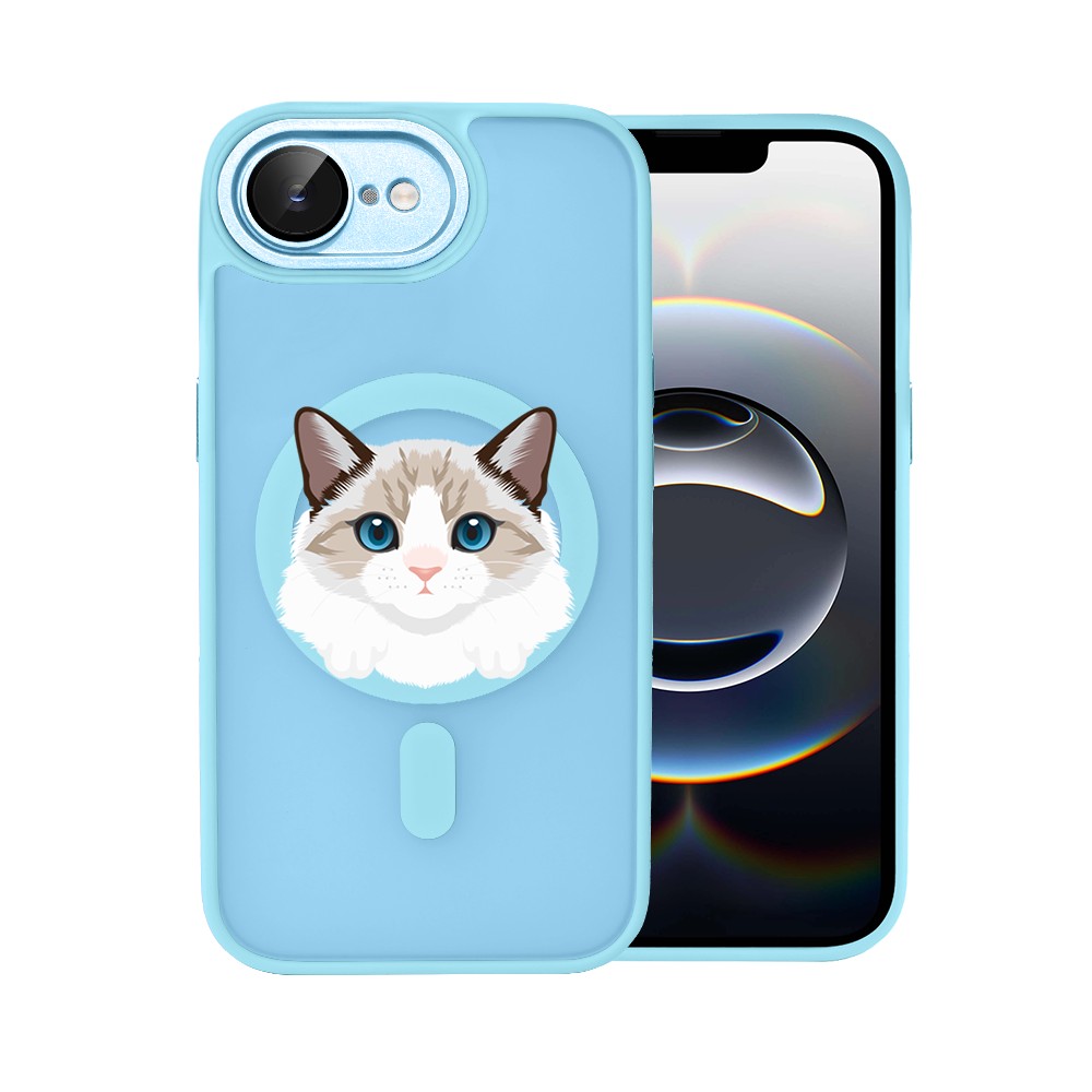 Etui do iPhone 16e Color Flush z MagSafe, z osłoną aparatu, kot birmański, błękitne