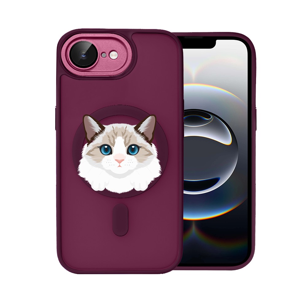 Etui do iPhone 16e Color Flush z MagSafe, z osłoną aparatu, kot birmański, wiśniowe