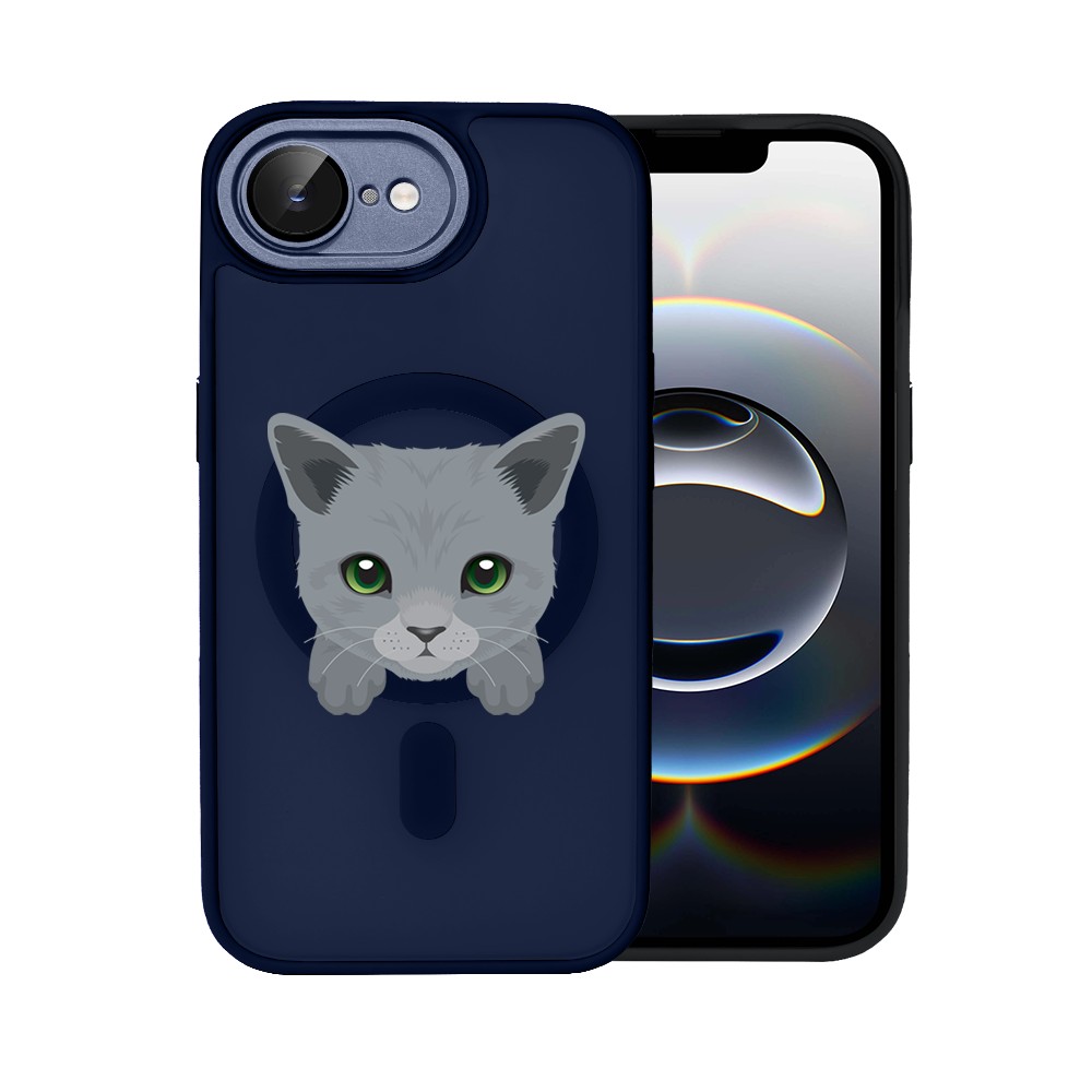 Etui do iPhone 16e Color Flush z MagSafe, z osłoną aparatu, kot brytyjski, granatowe