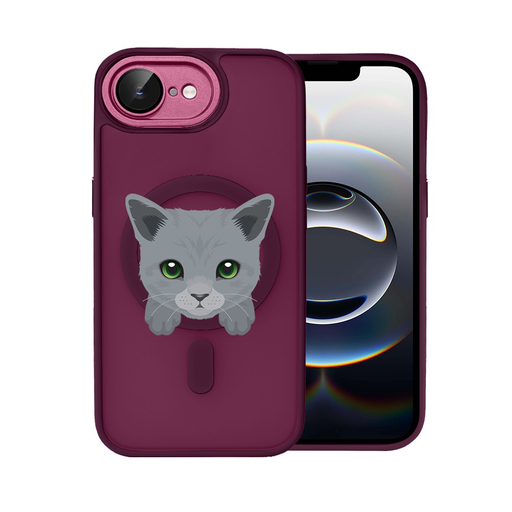 Etui do iPhone 16e Color Flush z MagSafe, z osłoną aparatu, kot bombajski, wiśniowe