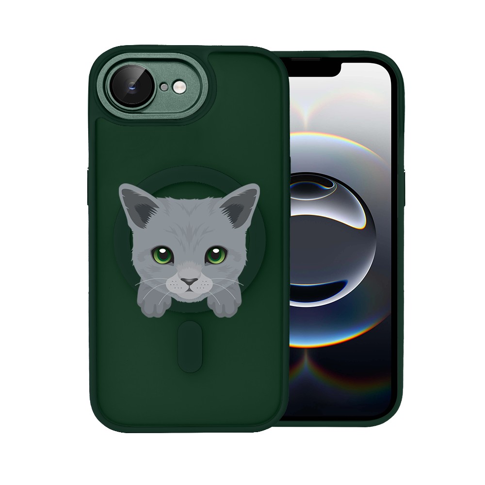 Etui do iPhone 16e Color Flush z MagSafe, z osłoną aparatu, kot brytyjski, zielone