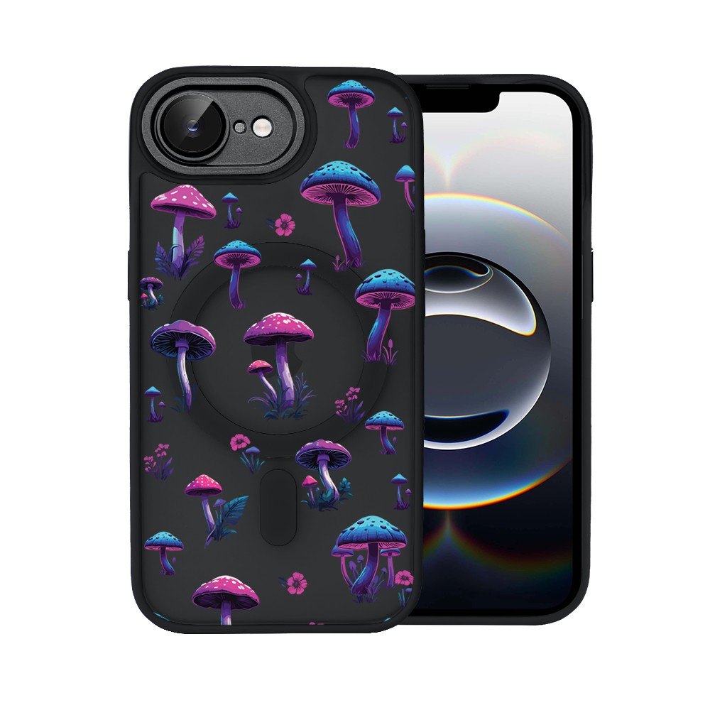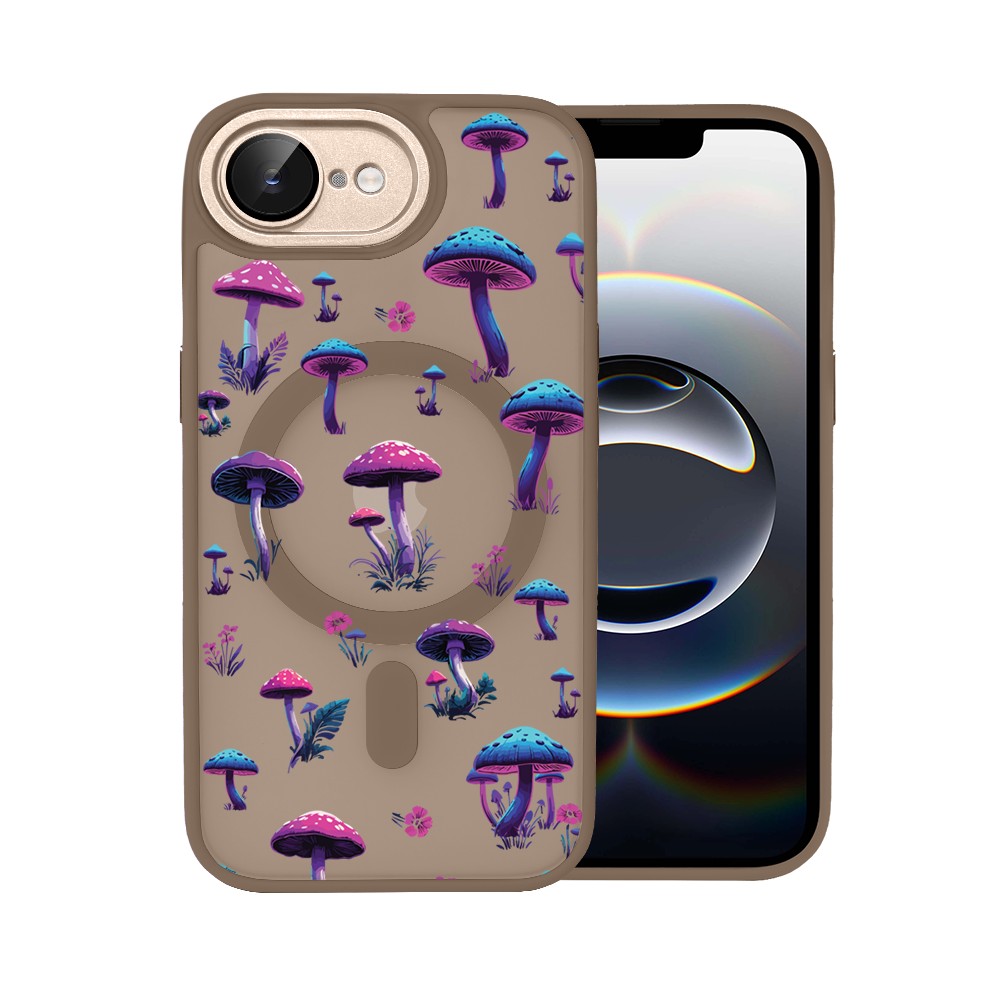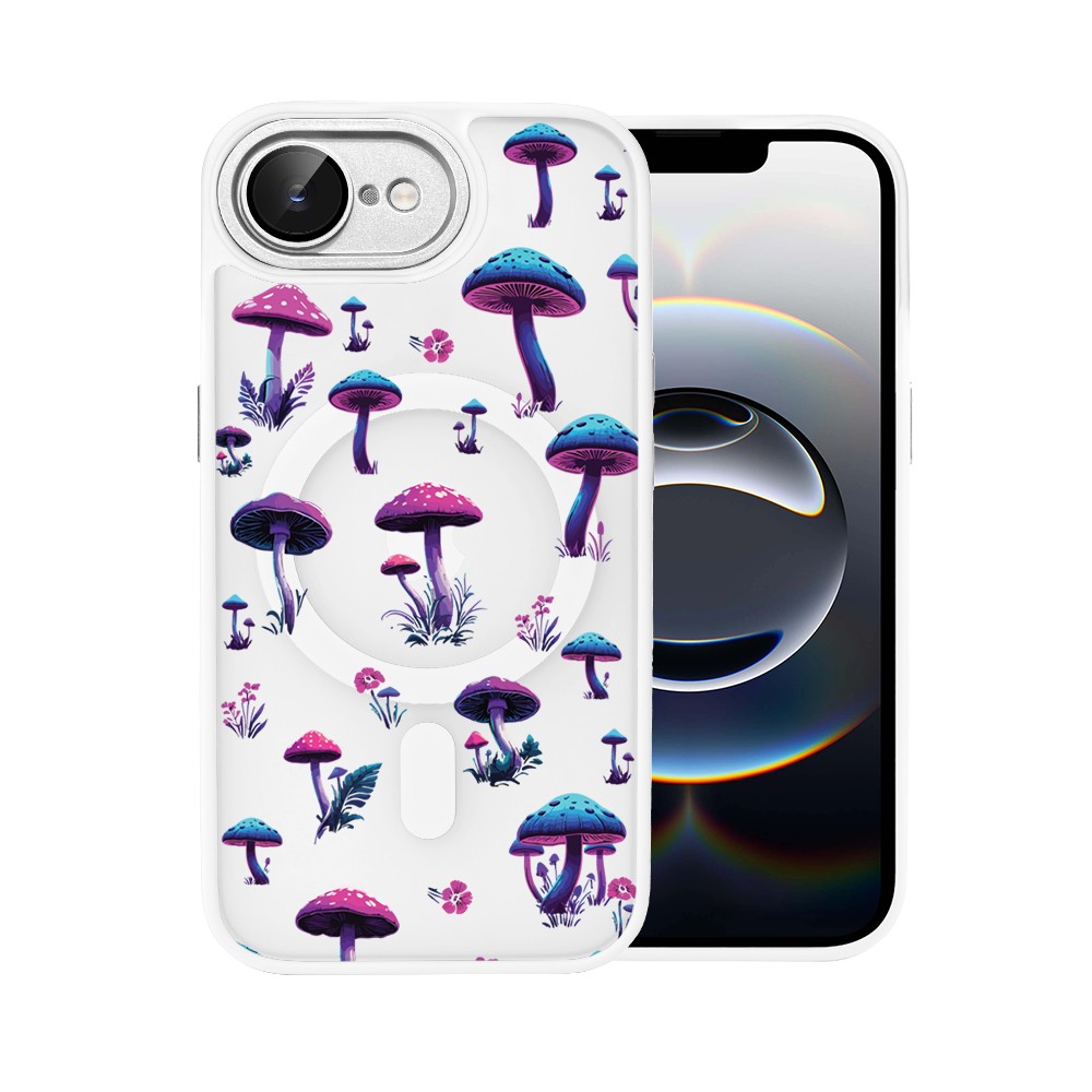 Etui do iPhone 16e Color Flush z MagSafe, z osłoną aparatu, magiczne grzybki, fioletowe