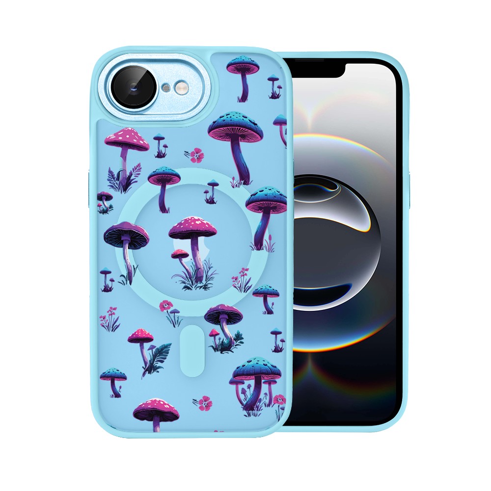 Etui do iPhone 16e Color Flush z MagSafe, z osłoną aparatu, magiczne grzybki, błękitne