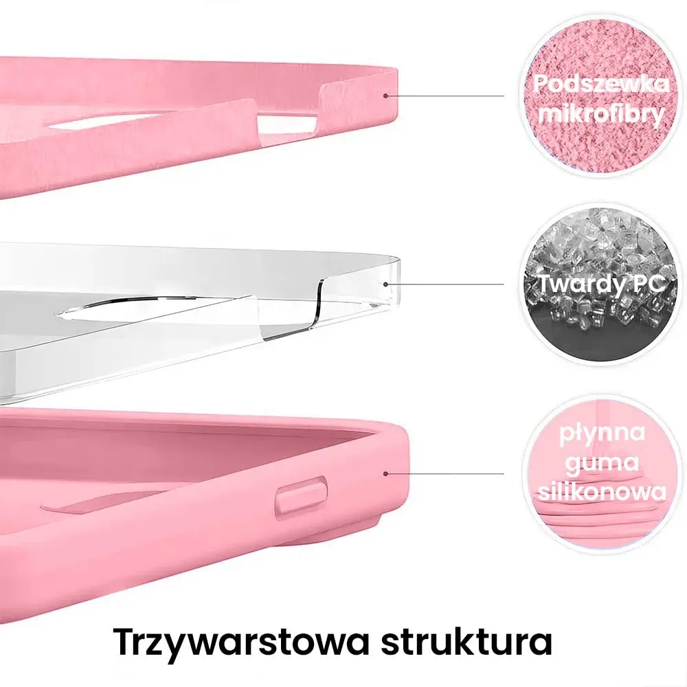 Etui do iPhone 11 Pro silikonowe z mikrofibrą soft touch z osłoną na aparat, jasny róż