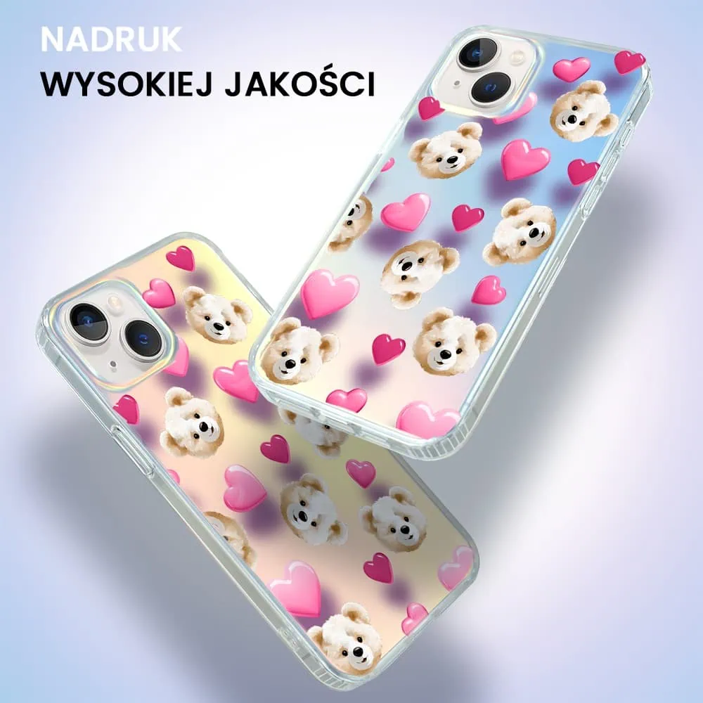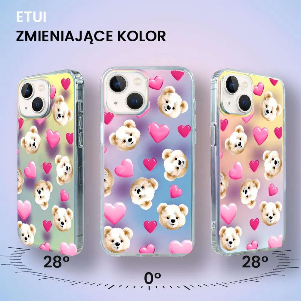Etui do iPhone 13 Bear With Me, Love Mood, miś i serduszka, zmieniające kolor