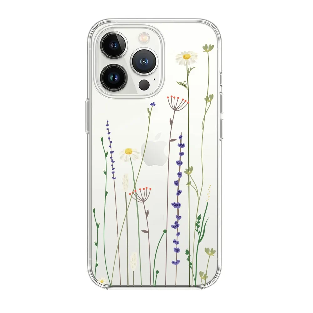 Etui do iPhone 13 Pro eleganckie, ze złotym, metalowym uchwytem i zdobieniami, osłona na aparat, fioletowe liliowe