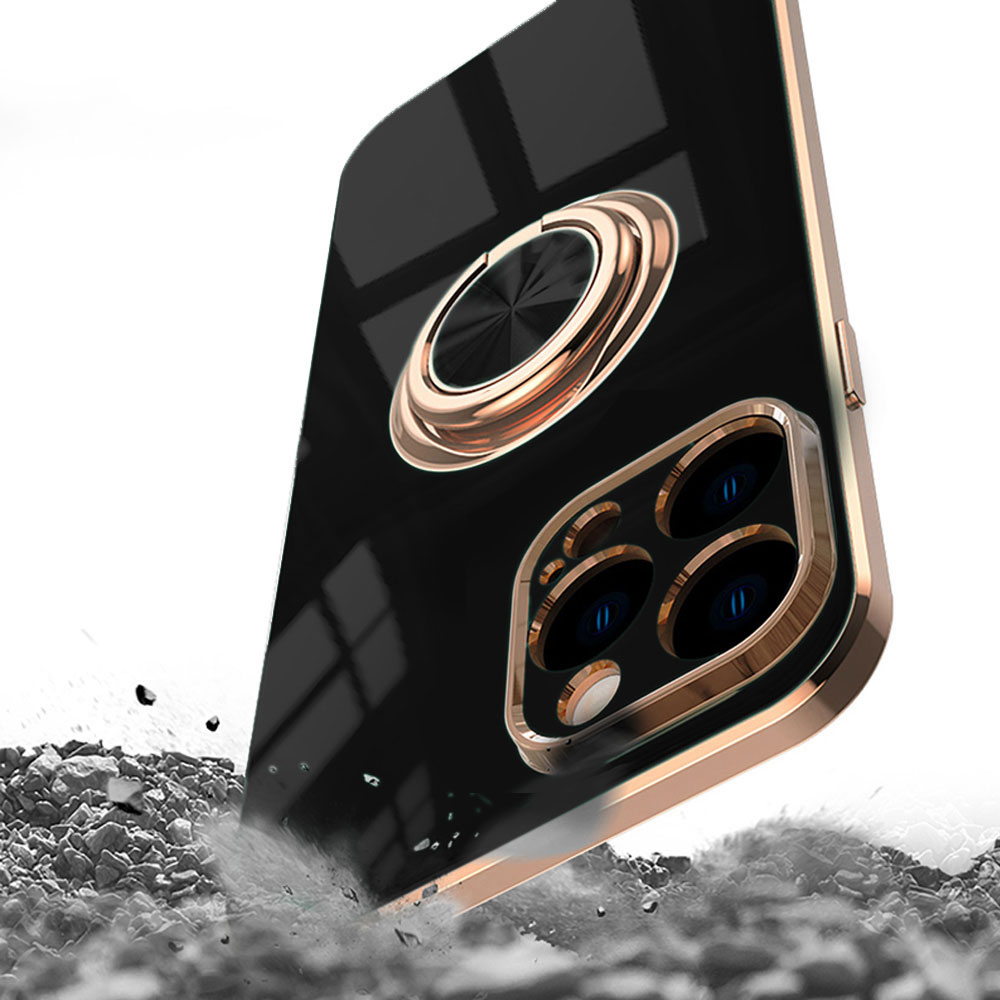 Etui do iPhone 13 Pro Max eleganckie, ze złotym, metalowym uchwytem i zdobieniami, osłona na aparat, czarne (OUTLET)