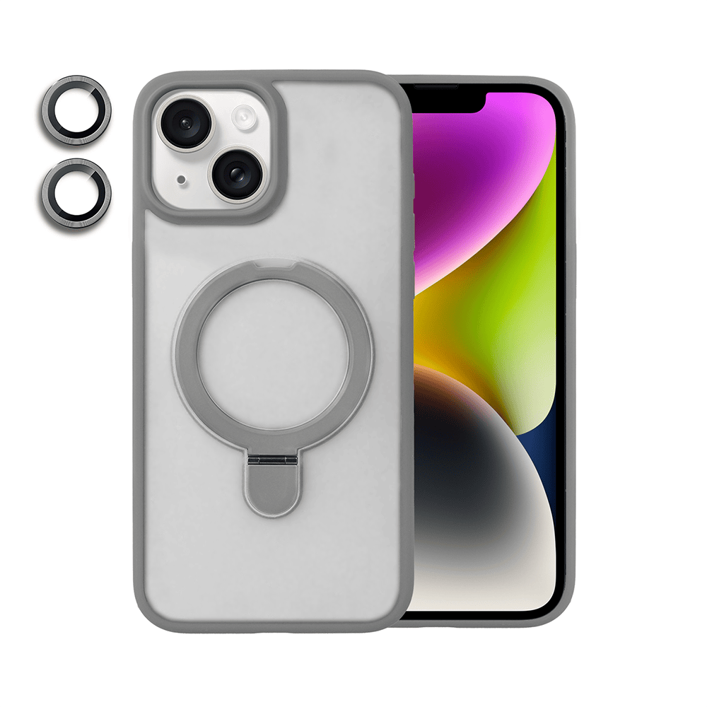 Etui do iPhone 14 Frosted Armor Stand 3w1 z podstawka i ochrona aparatu, szare