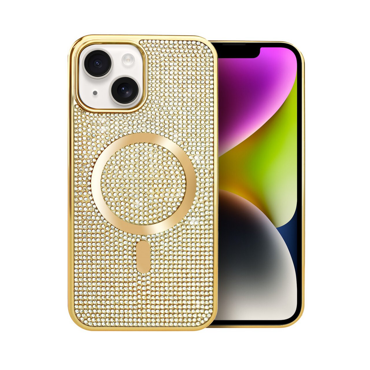 Etui do iPhone 14 klasyczne z magnetyczną klapką złoty róż