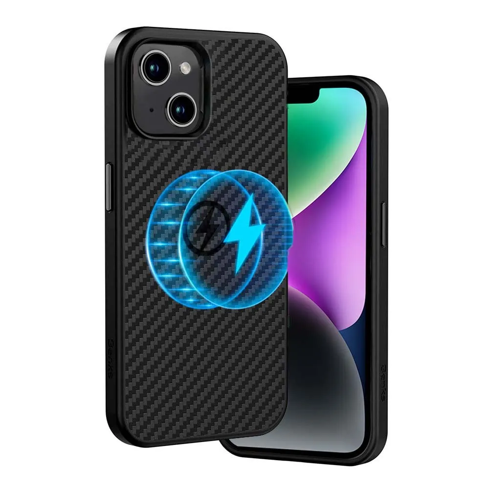 Etui jest wykonane z wytrzymałego włókna węglowego. Ta nowoczesna konstrukcja jest lekka i przyjemna w dotyku. Matowe wykończenie sprawia, że iPhone pewnie leży w dłoni. Zabrudzenia, rysy i pęknięcia stają się tylko wspomnieniem. Obudowa pochłania wstrząsy. Przedmiot został wzmocniony elastyczną gumą silikonową. Z łatwością samodzielnie założysz to innowacyjne etui na swój telefon.
