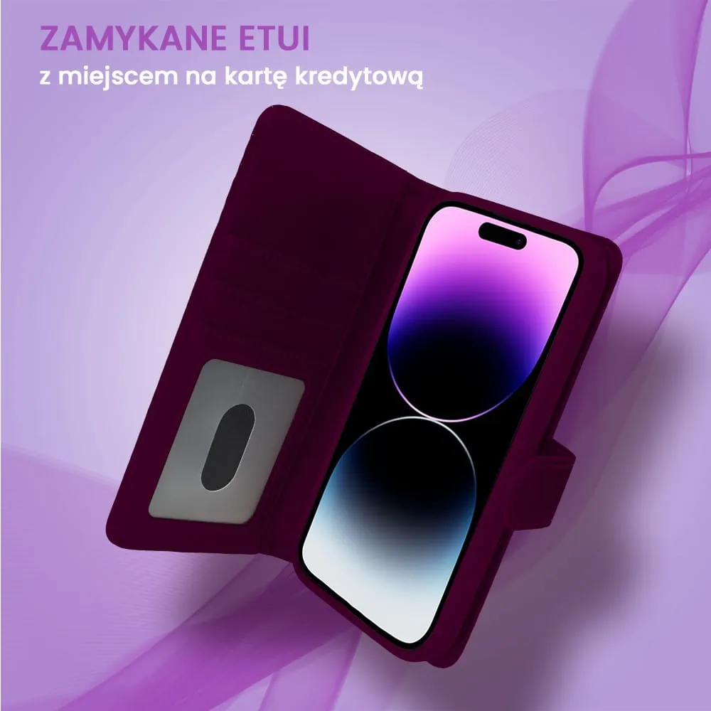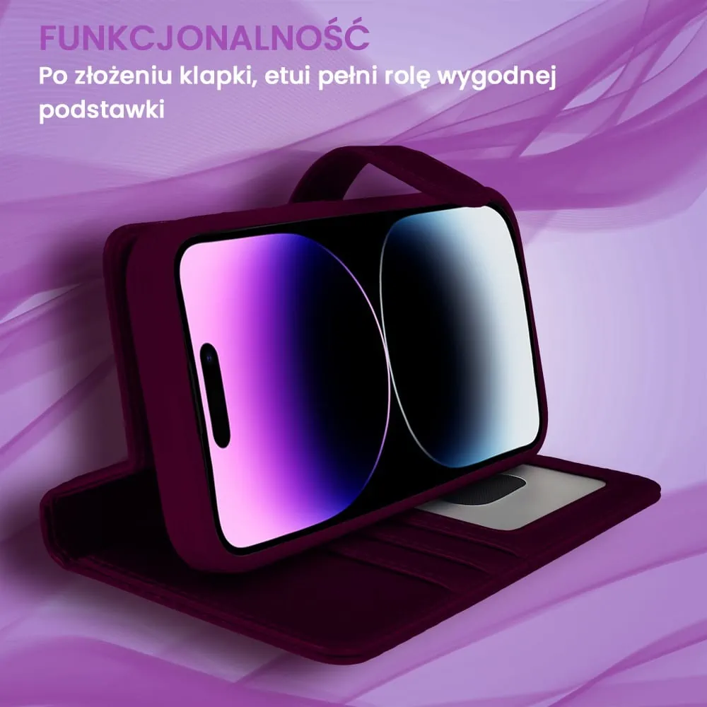 Etui do iPhone 14 Pro Max 3w1 Magsafe Double Book, zestaw etui oraz kabura z podstawką, purpurowe