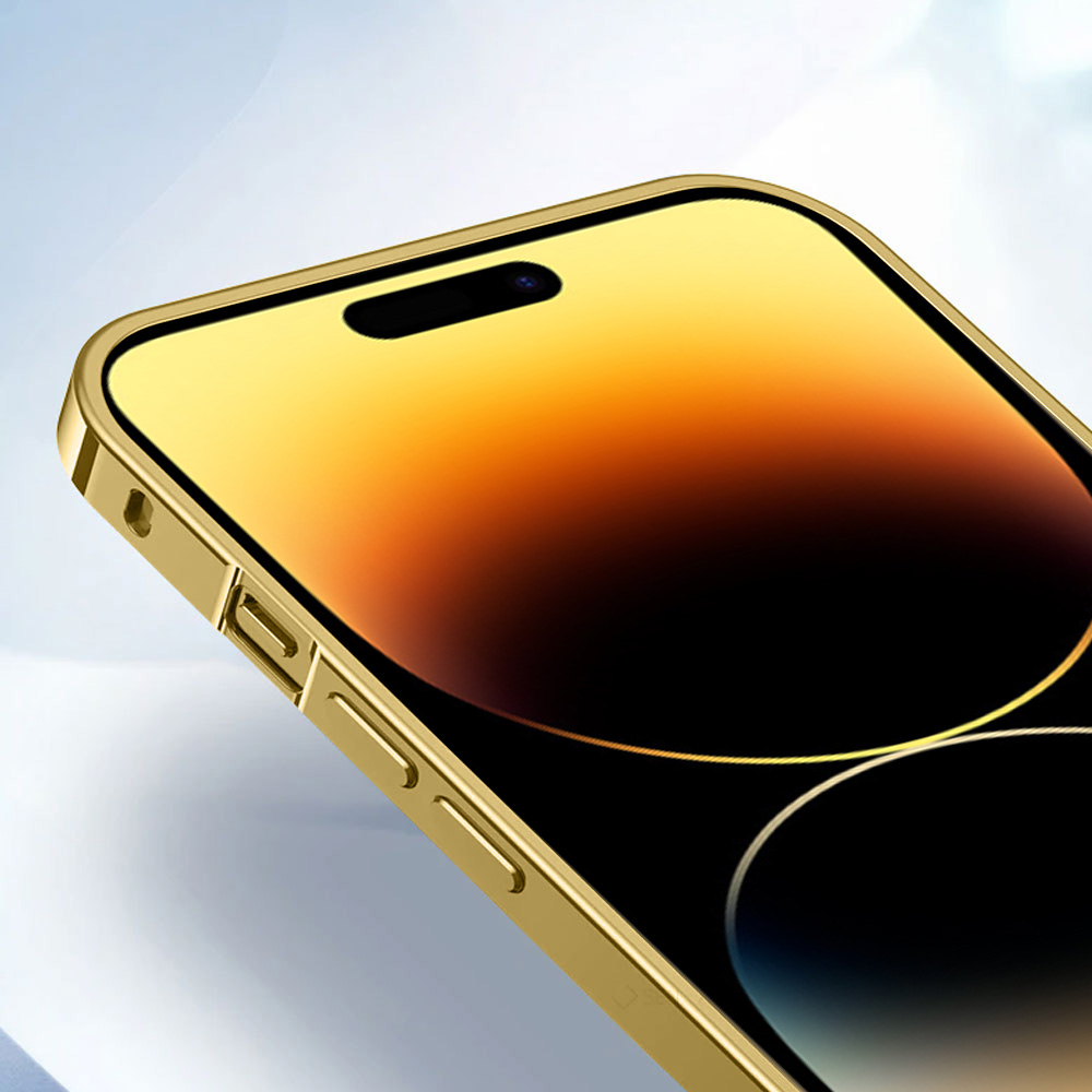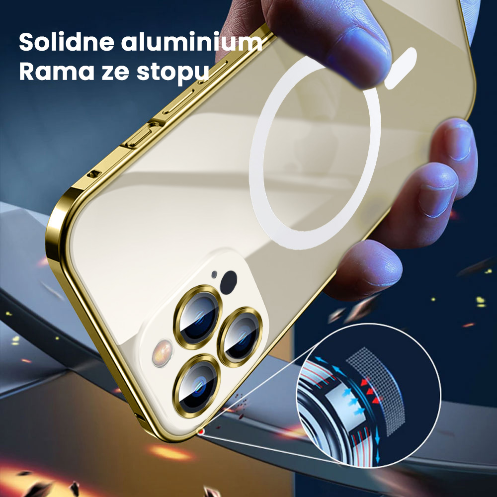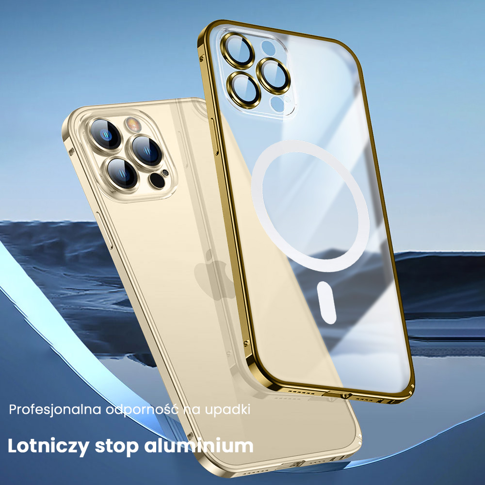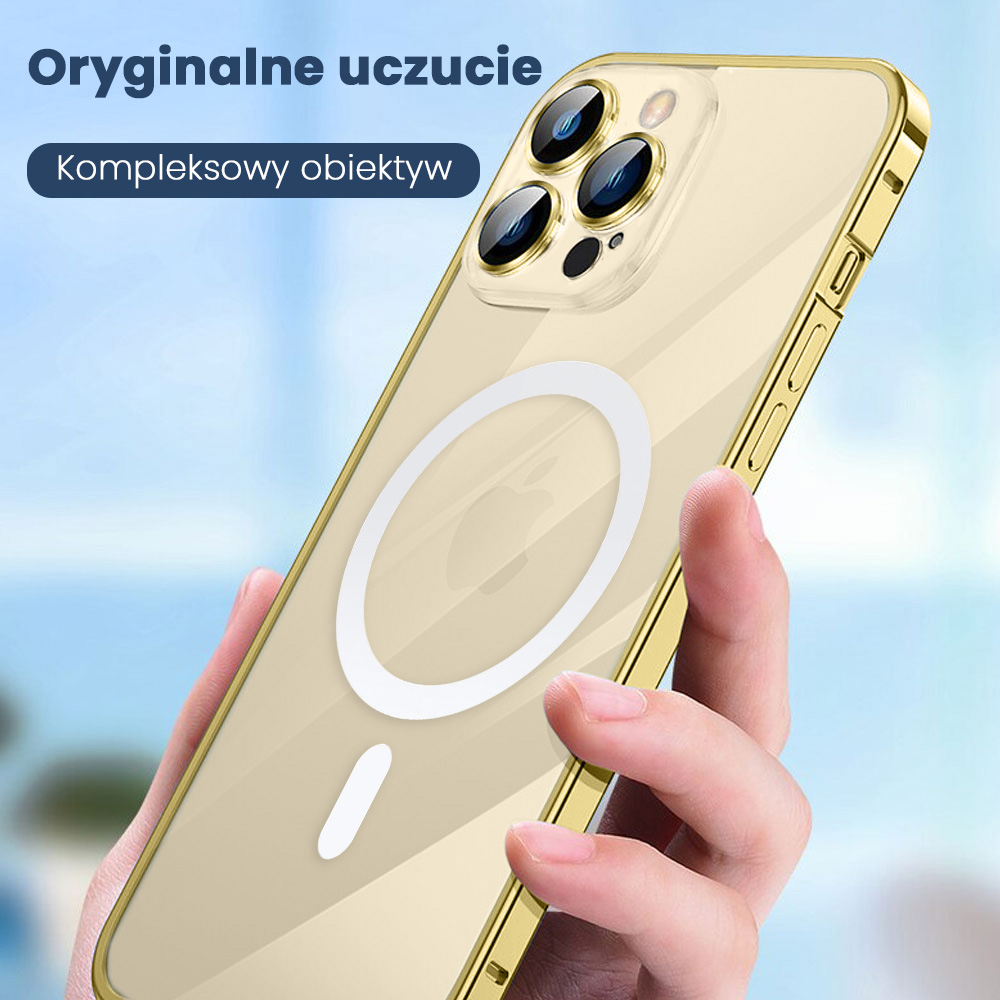 Etui do iPhone 14 Pro Max Magsafe Metalic Gold Frame Oryginal matowe, ochrona aparatu, złota ramka