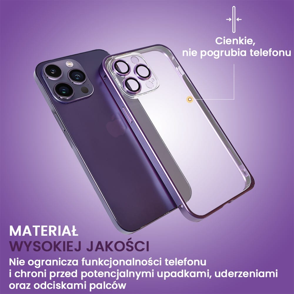 Etui do iPhone 14 Pro Metalic Frame Oryginal, ochrona aparatu, purpurowa ramka
