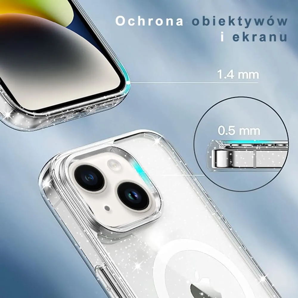 Etui do iPhone 14 z Magsafe Space Star, przeźroczyste brokatowe