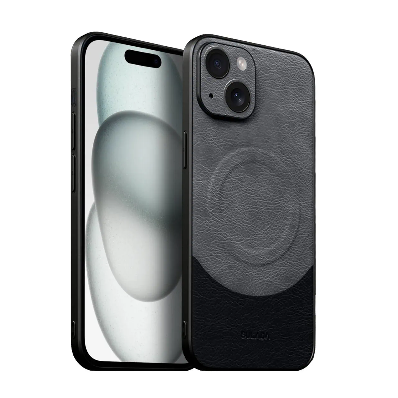 Etui do iPhone 15 Magsafe Leather Protect eleganckie skórzane, Sulada Original, szaro-czarne