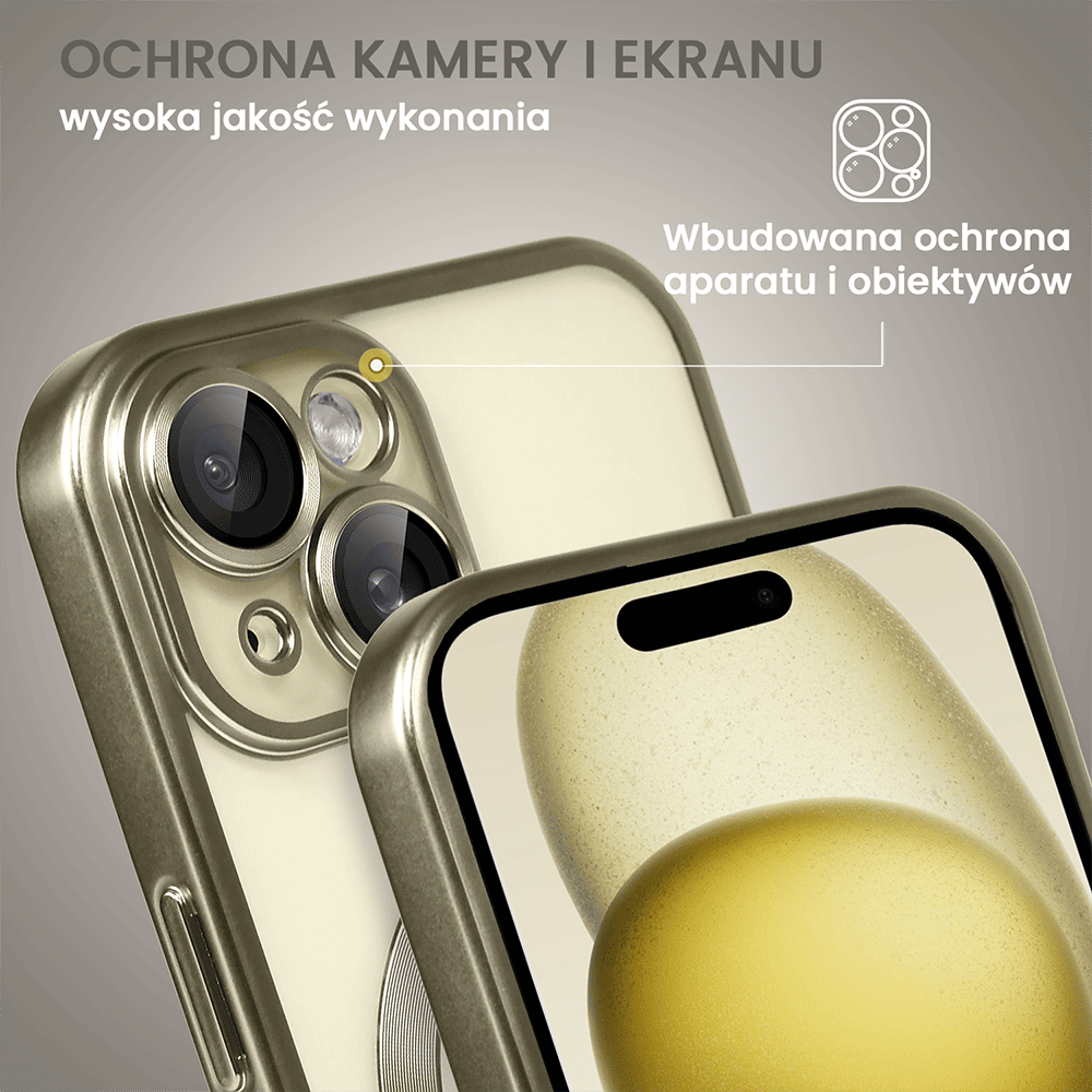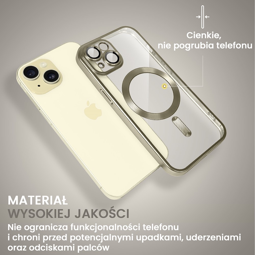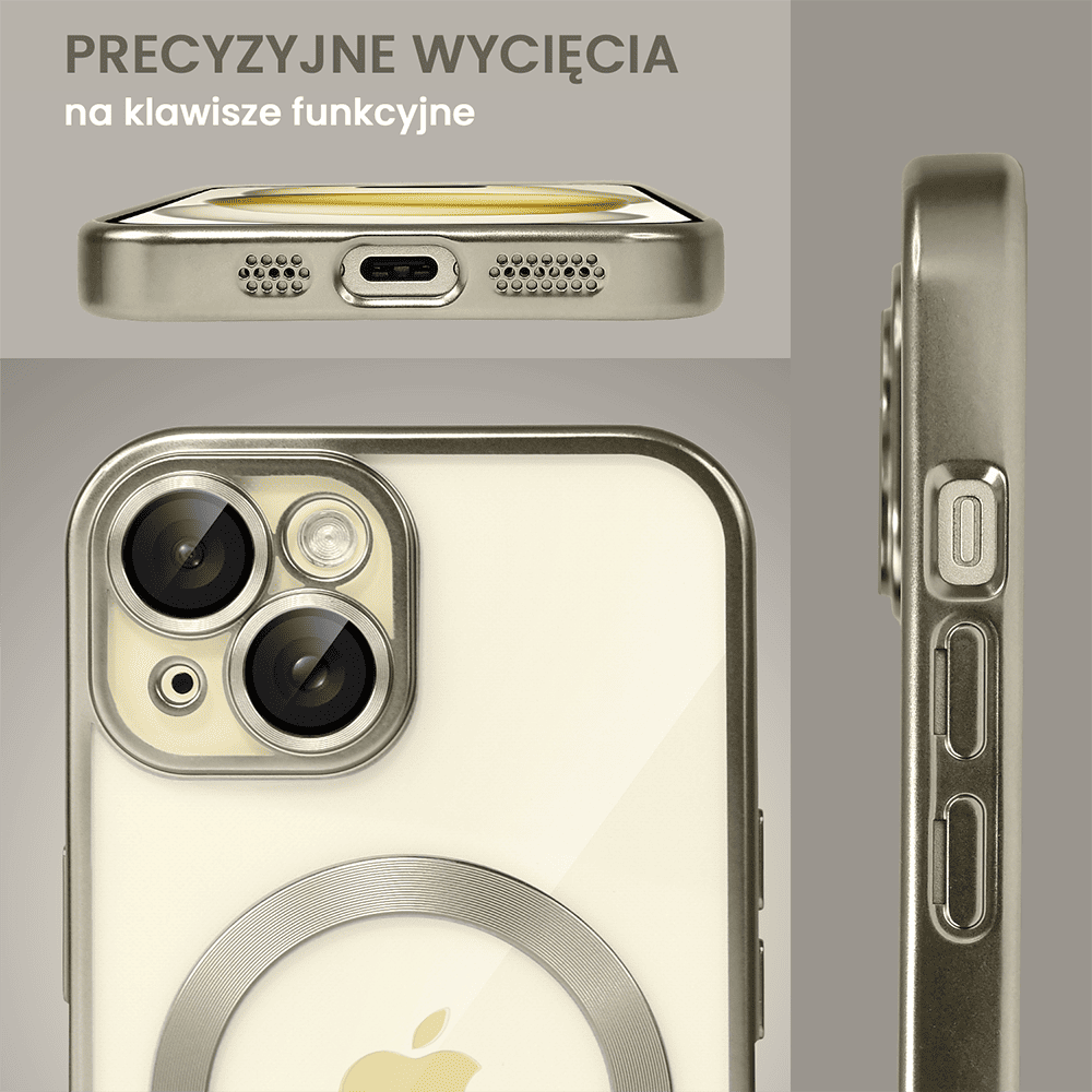 Etui do iPhone 15 MagSafe Luxury Protect przeźroczyste, z osłoną aparatu, Titanium Finish, naturalnie tytanowe
