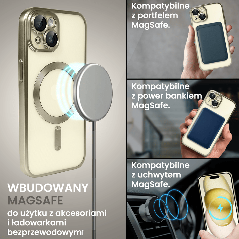 Jeśli lubisz funkcjonalność z nowoczesną technologią proponujemy etui z wbudowanymi magnesami Magsafe, które umożliwiają korzystanie z certyfikowanych akcesoriów MagSafe, w tym ładowanie indukcyjne bez ściągania etui. Idealnie połączone magnesy sprawiają, że ładowanie bezprzewodowe jest szybsze i stabilniejsze a iPhone nie przesuwa sie w trakcie ładowania. Kiedy nadejdzie czas na ładowanie, po prostu zostaw etui na telefonie i załóż ładowarkę (kompatybilna z MagSafe) lub ustaw je na ładowarce z certyfikatem Qi.