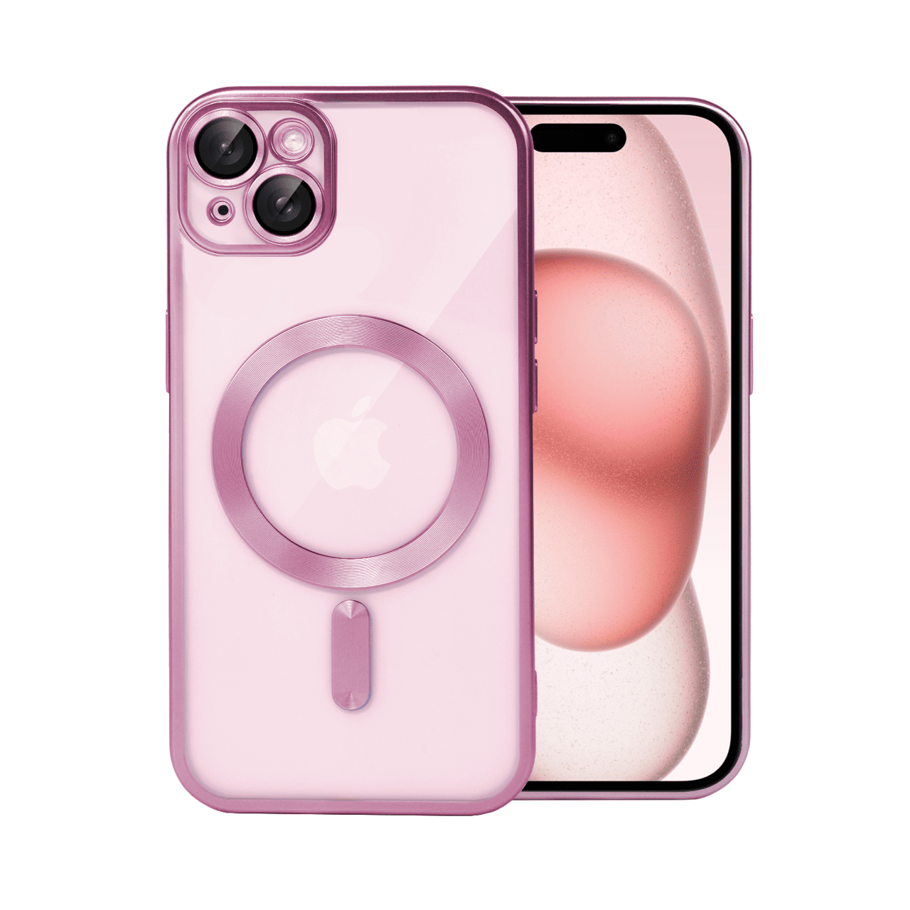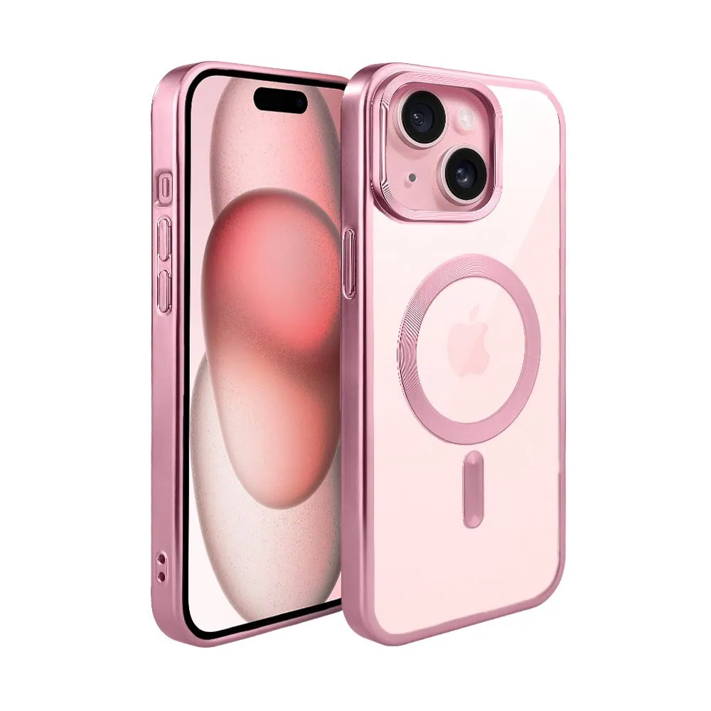 Etui do iPhone 15 Plus MagSafe Luxury Protect przeźroczyste, z osłoną aparatu, Titanium Finish, różowe