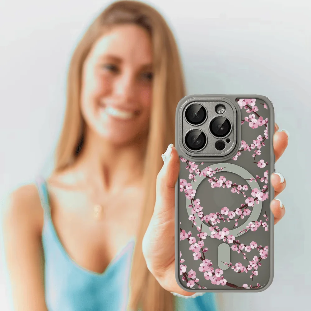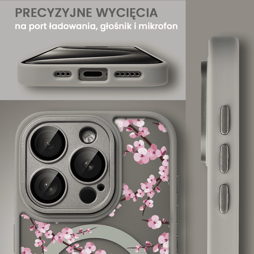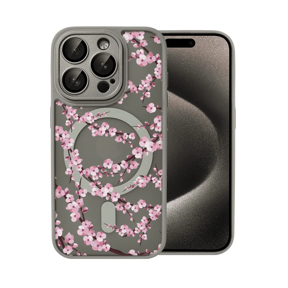 Etui do iPhone 15 Pro Color Flush z Magsafe, z osłoną aparatu, z nadrukiem czarny kwiat, tytanowe