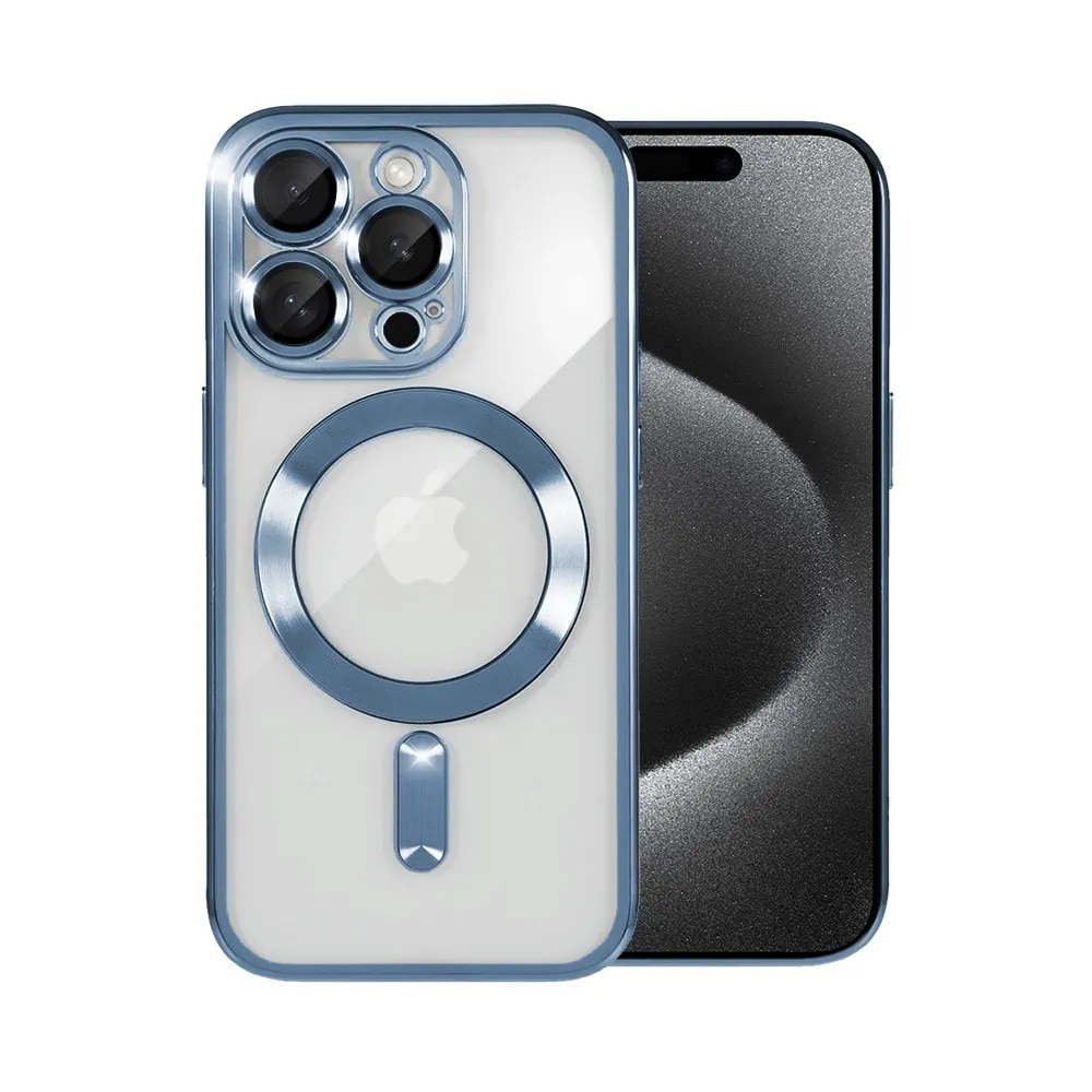 Etui do iPhone 15 Pro MagSafe Luxury Protect przeźroczyste, hybrydowa ochrona kamery, górski błękit