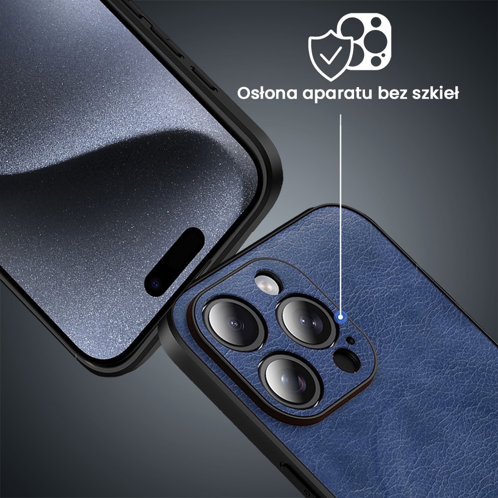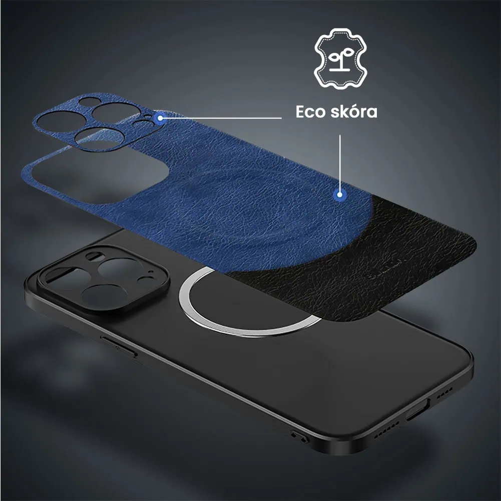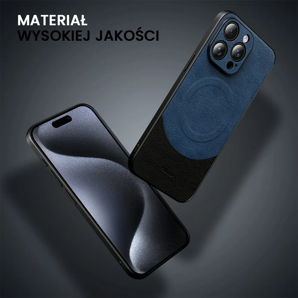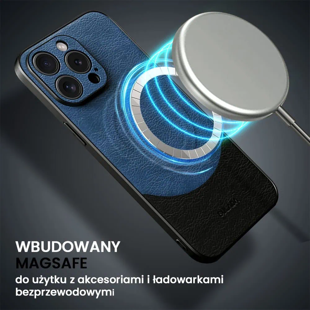 Etui do iPhone 15 Pro Magsafe Leather Protect eleganckie skórzane, Sulada Original, granatowo-czarne