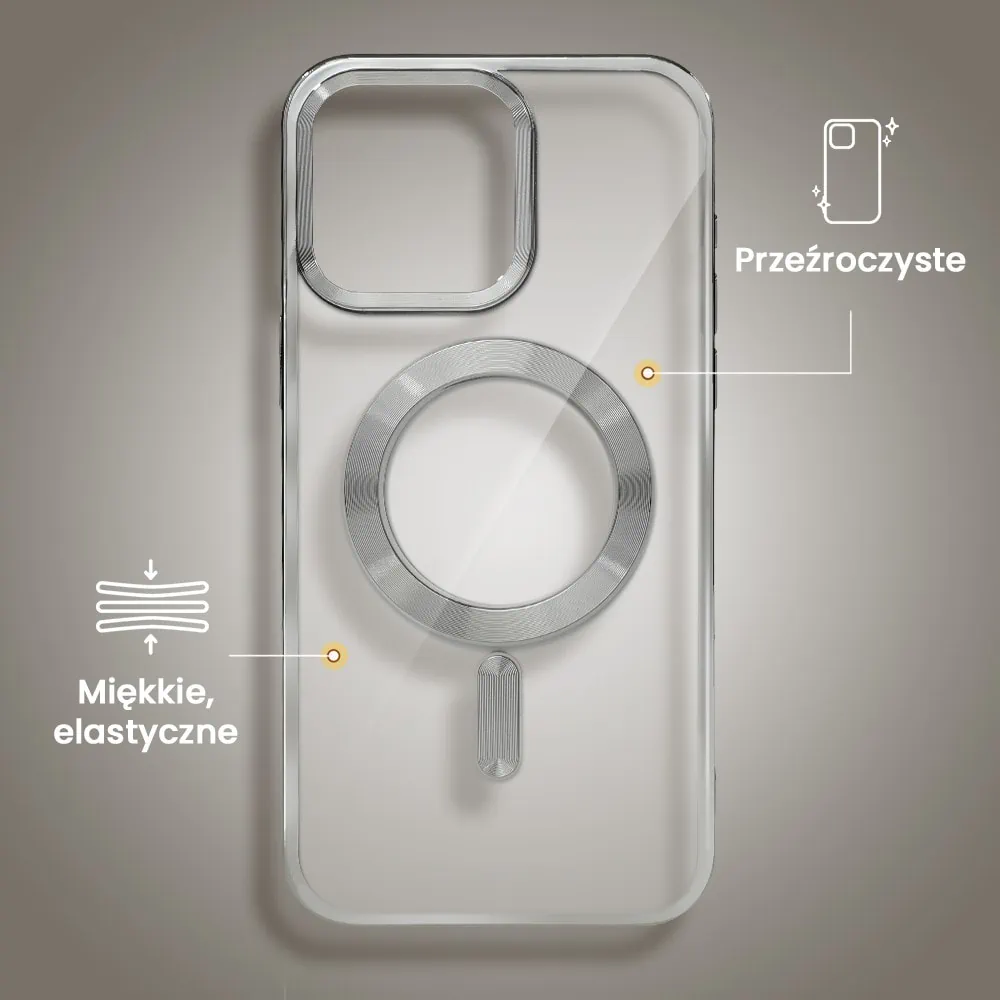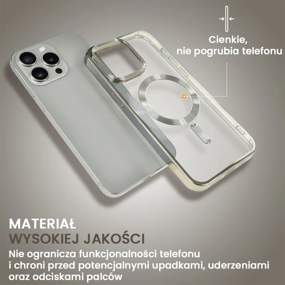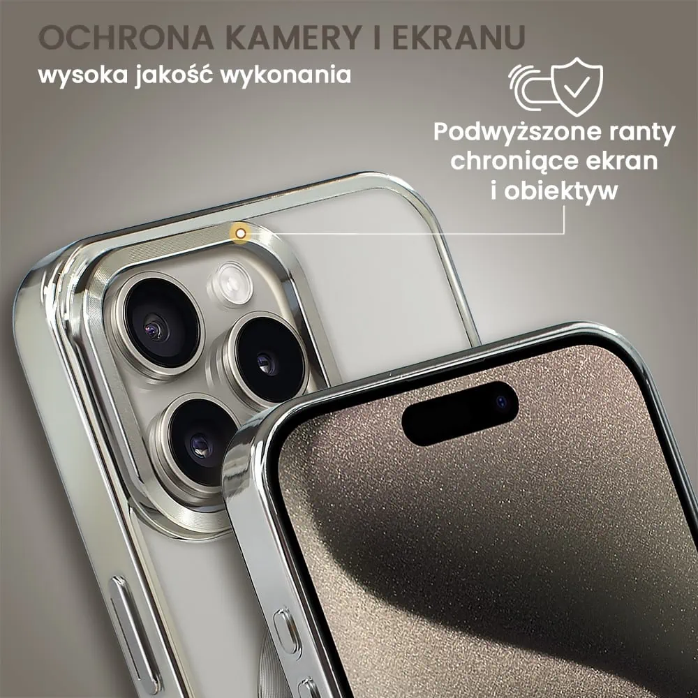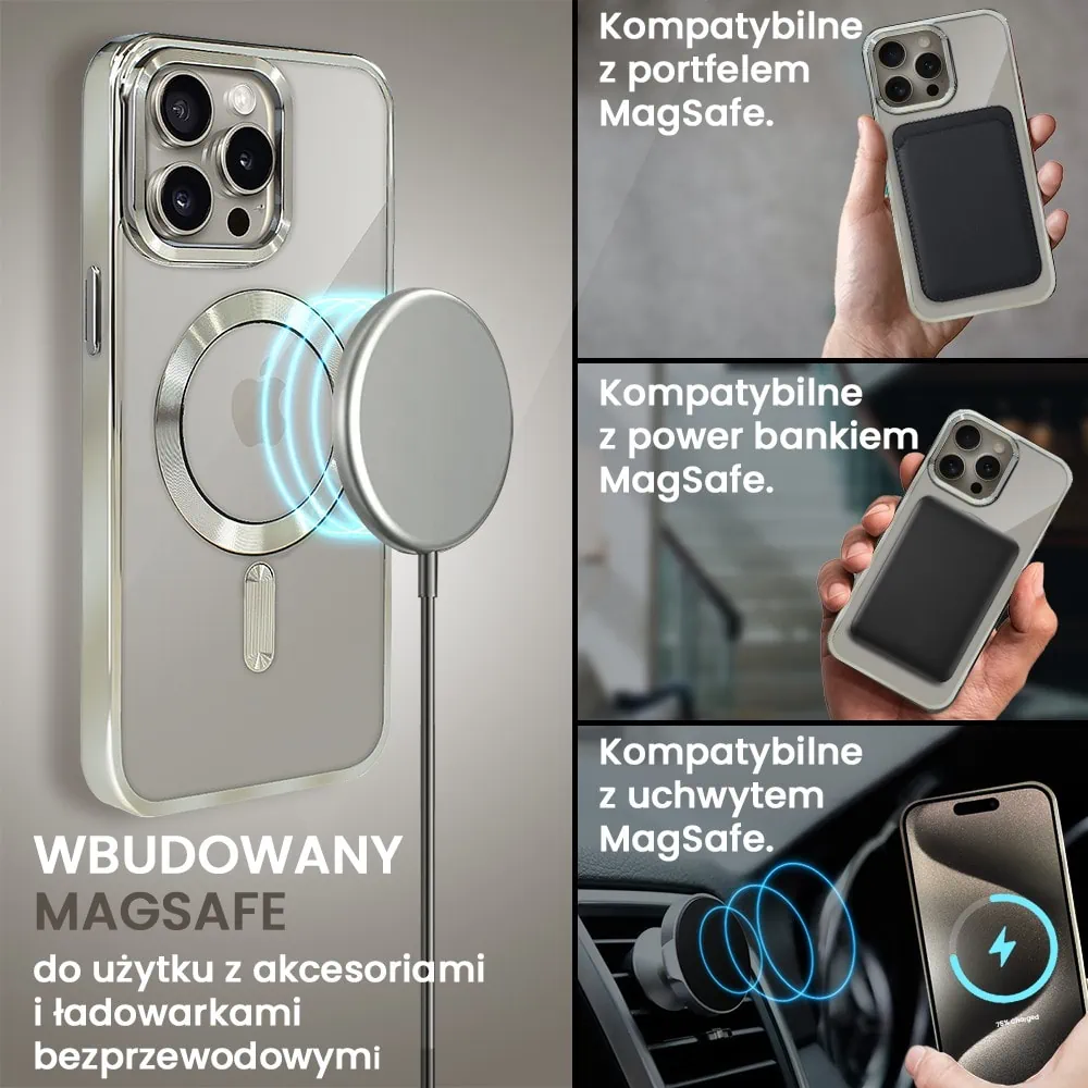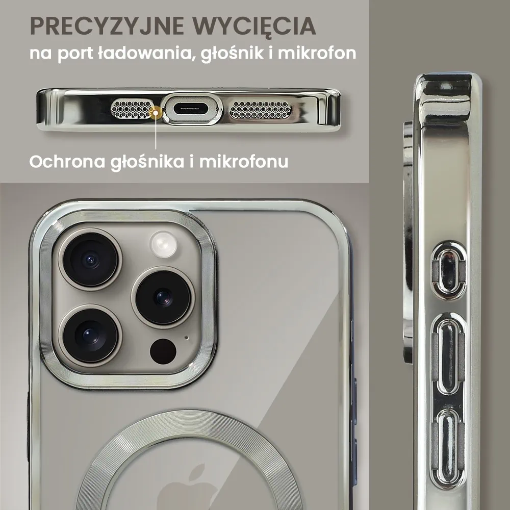 Etui do iPhone 15 Pro Max MagSafe Luxury, przeźroczyste, tytanowe