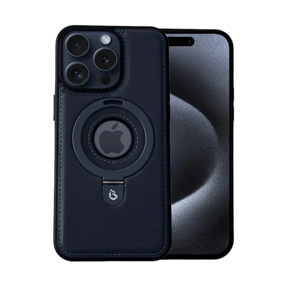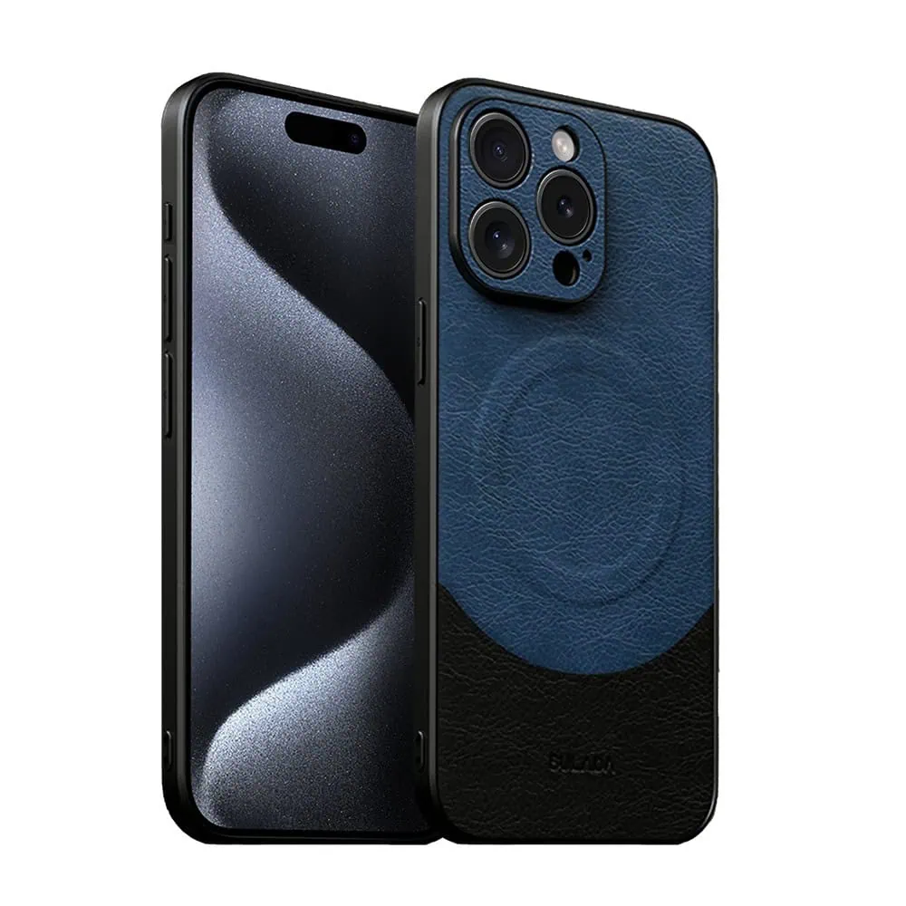 Etui do iPhone 15 Pro Magsafe Leather Protect eleganckie skórzane, Sulada Original, granatowo-czarne