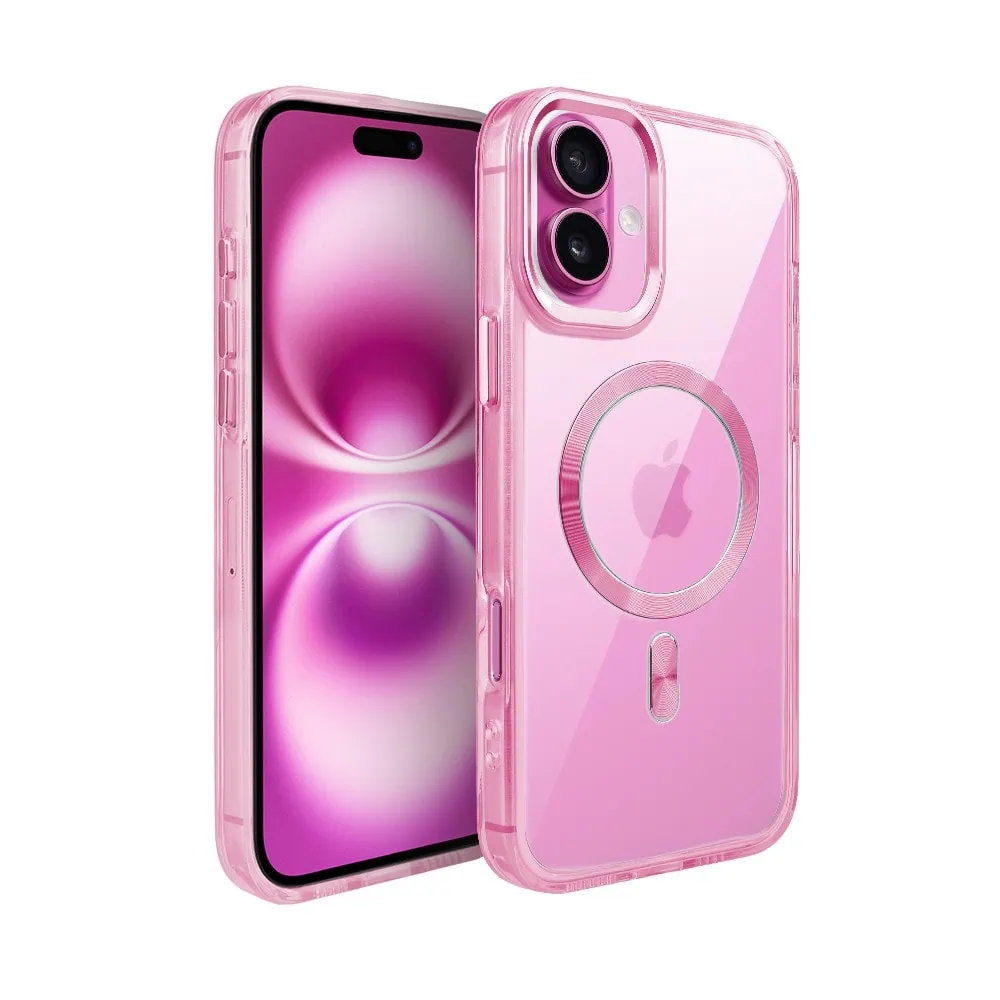 Etui do iPhone 16 Diadem Glow, błyszczące z MagSafe, przeźroczyste, różowe