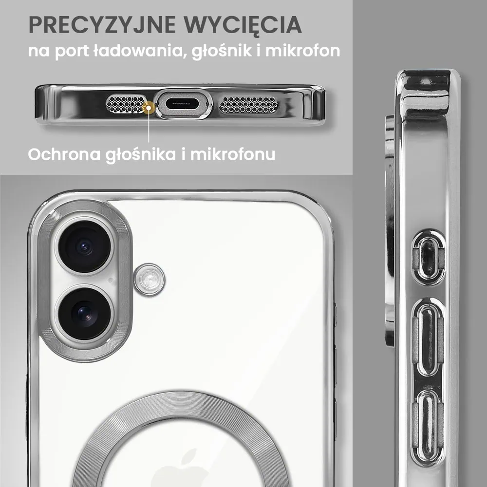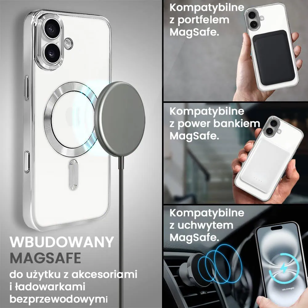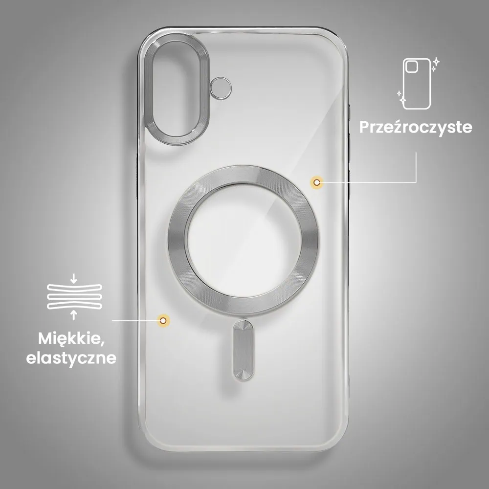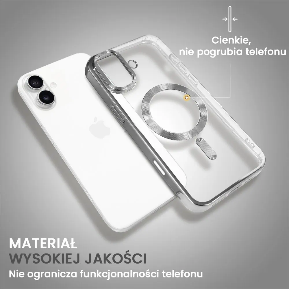 Etui do iPhone 16 MagSafe Luxury, przeźroczyste, srebrne