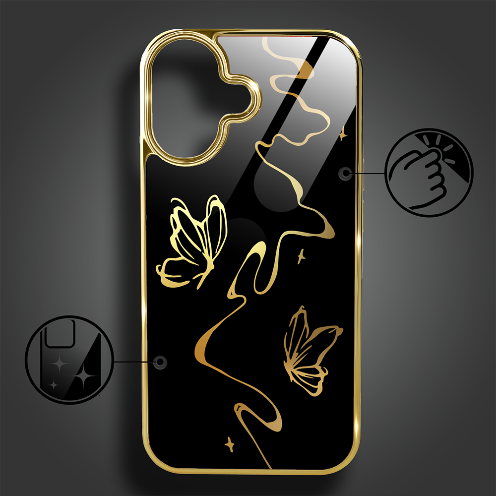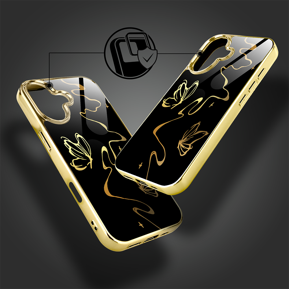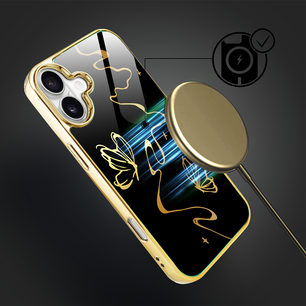 Etui do iPhone 16 Plus, Elite Glass z MagSafe, szklany tył, Golden Midnight, Efekt motyla, złote