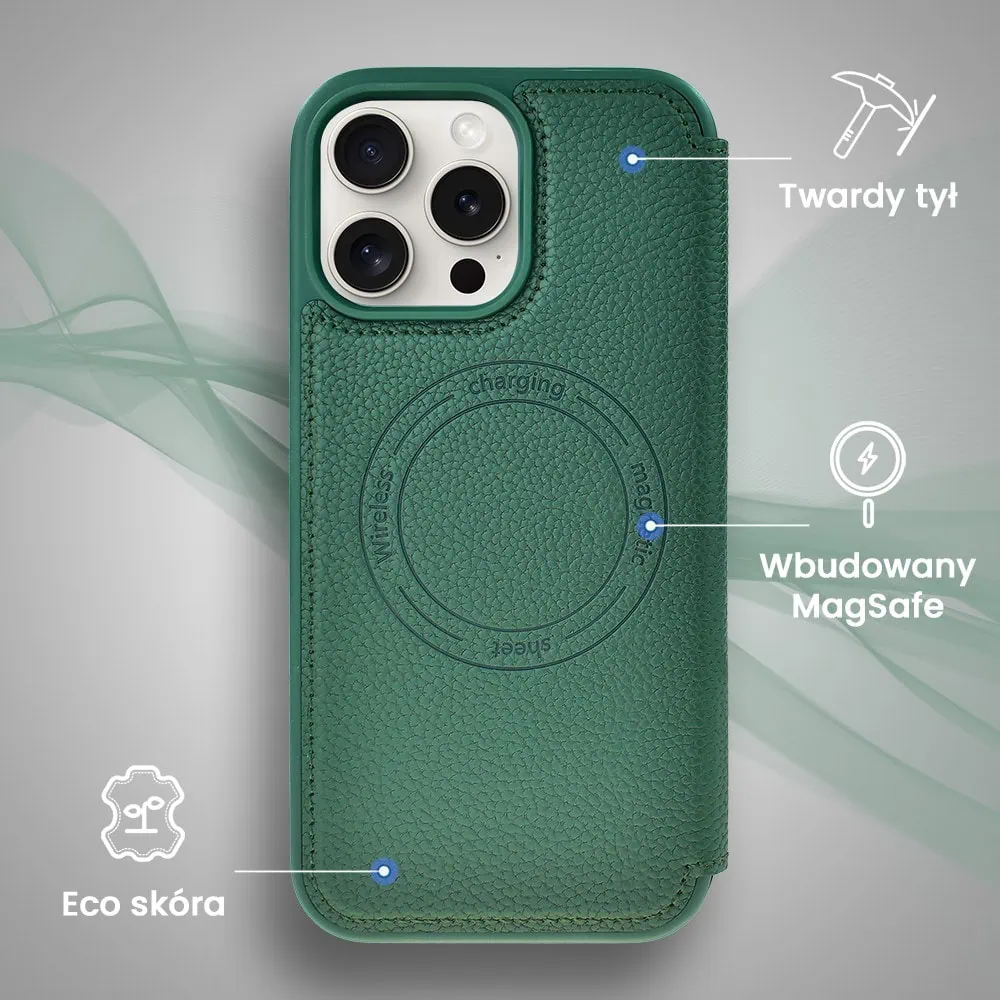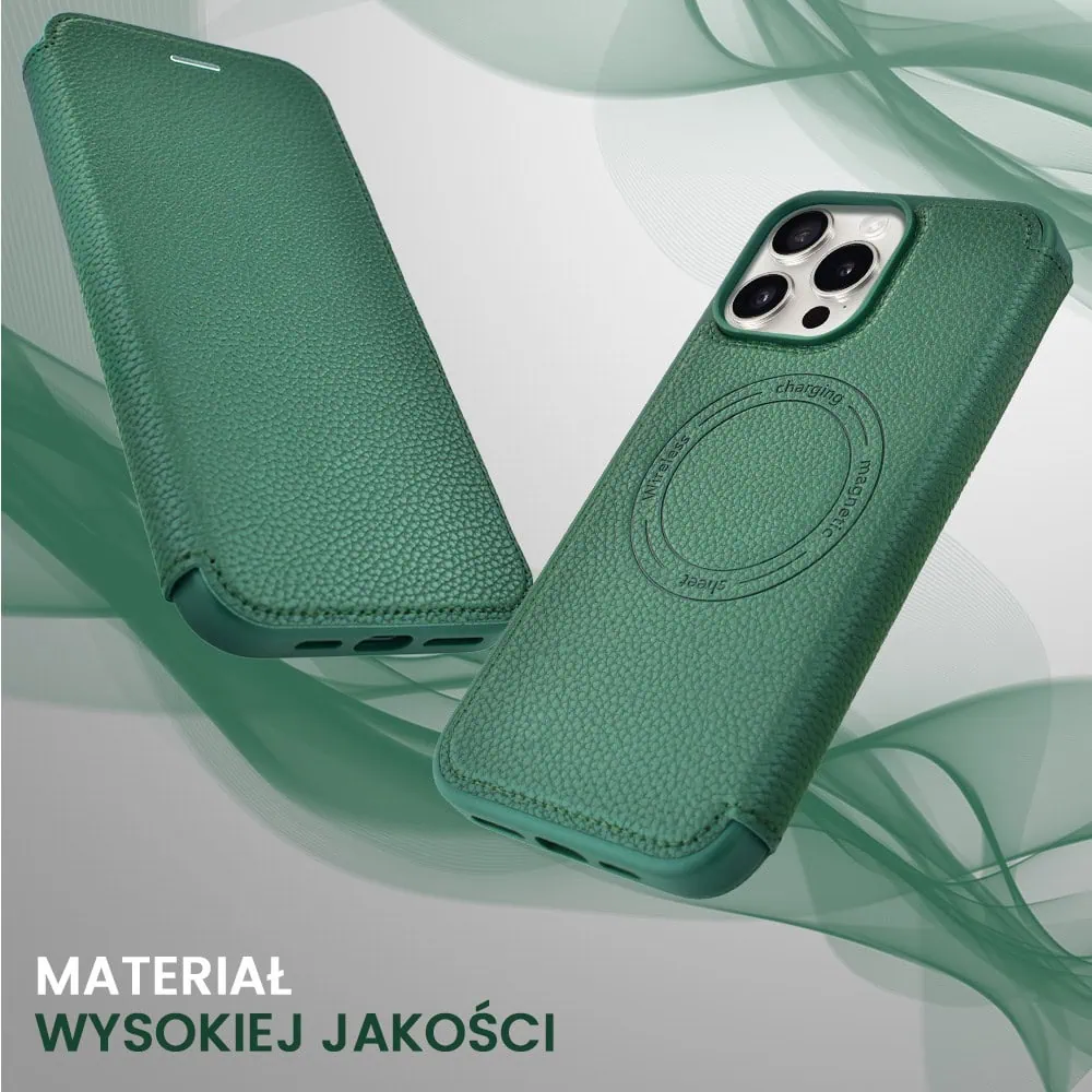 Etui do iPhone 16 Pro z klapką Solid MagSafe Book, typu książka, zielone