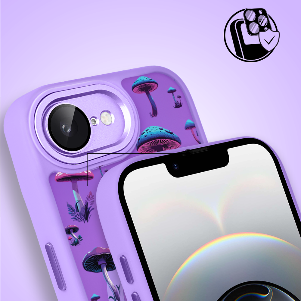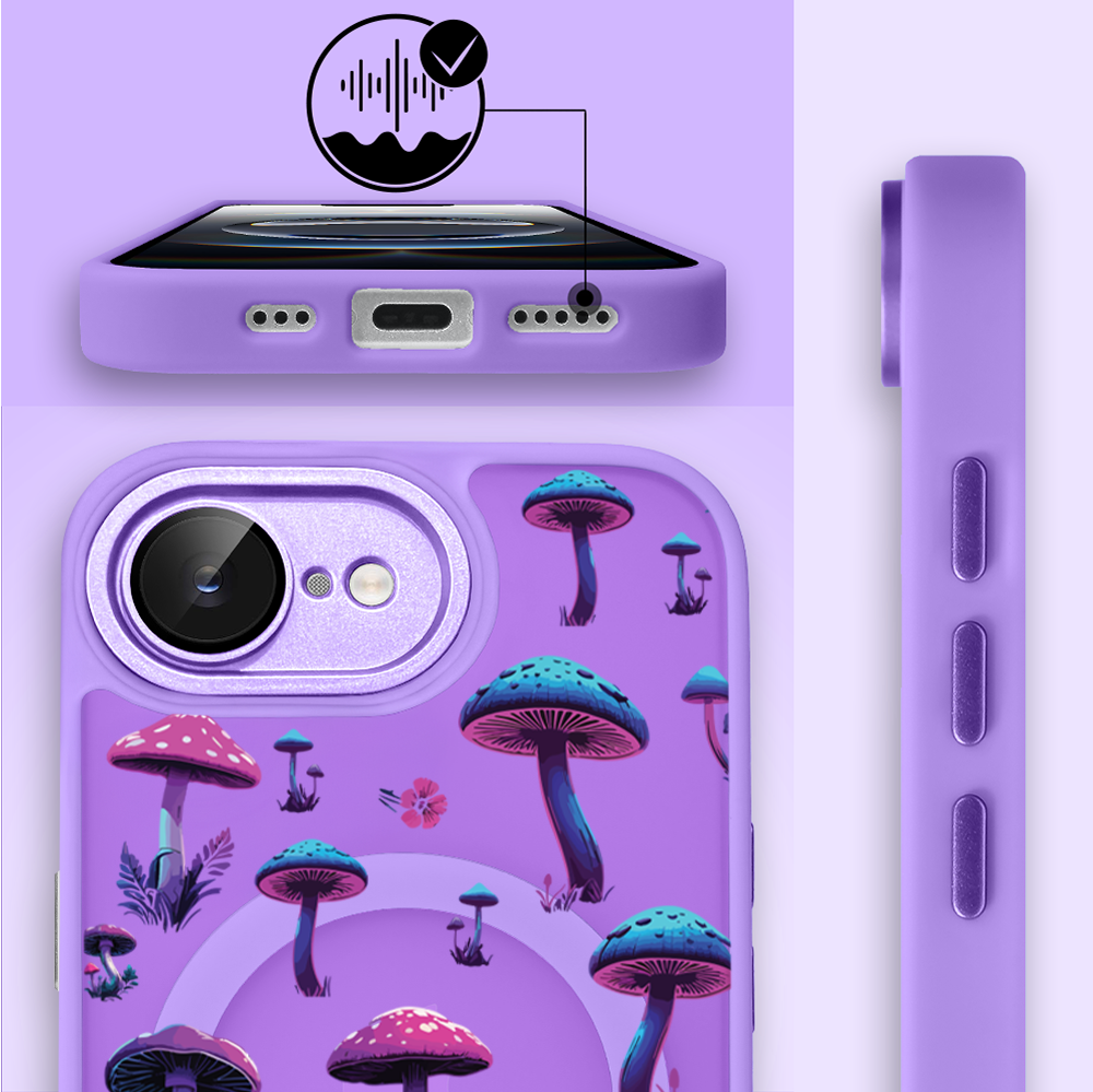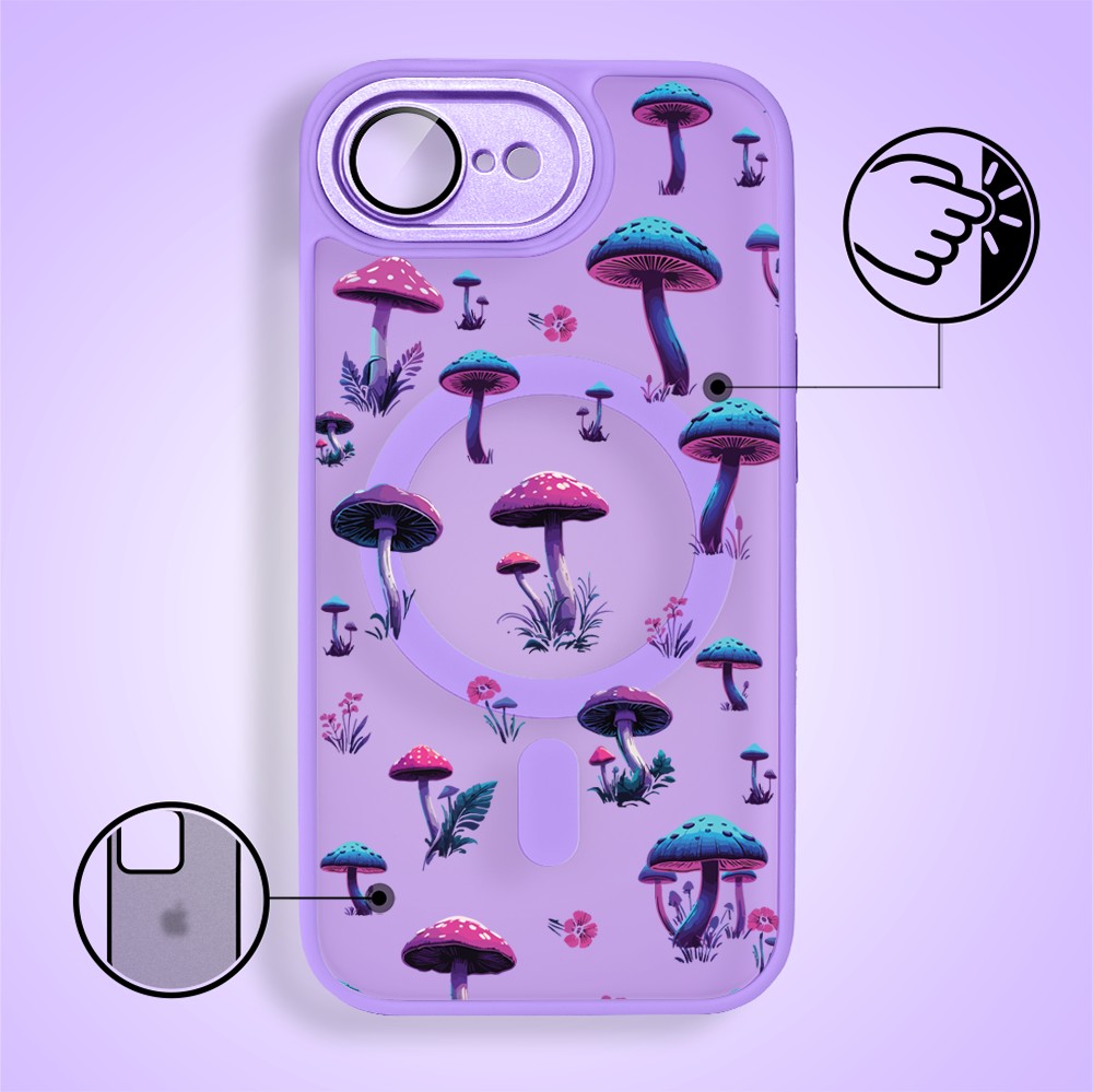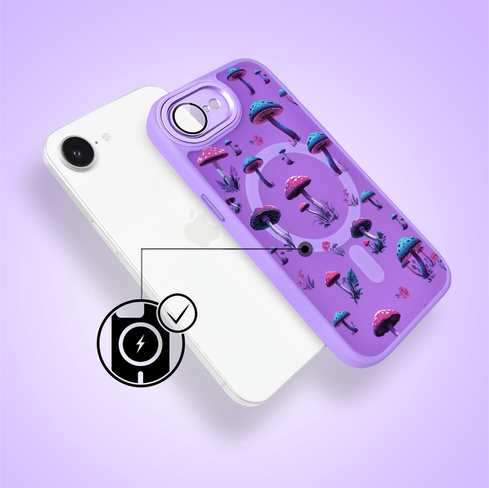 Etui do iPhone 16e Color Flush z MagSafe, z osłoną aparatu, magiczne grzybki, fioletowe